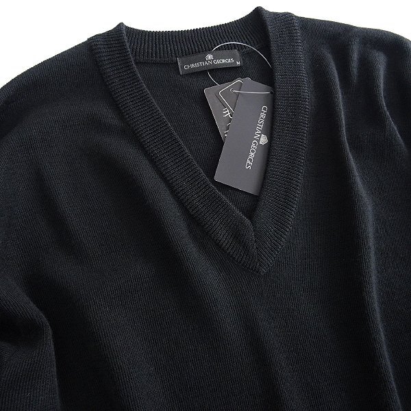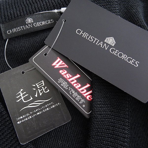 新品 クリスチャンジョルジュ ウール混 ウォッシャブル ニット LL 黒 【SSA12-13400_11_LL】 CHRISTIAN GEORGES セーター メンズ