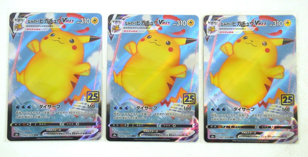 080 b5665 ポケカ 022/028 RRR トリプルレア なみのりピカチュウVMAX キズあり 3枚セット