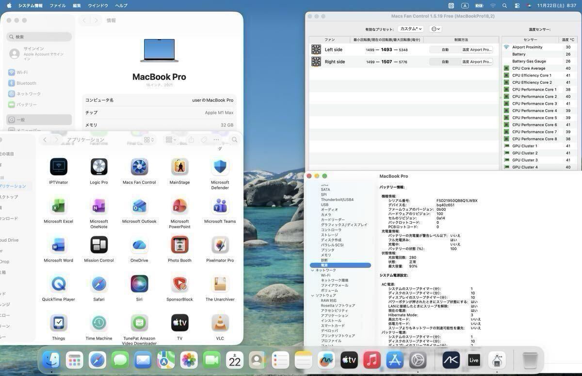 ★SSD1TB★MacBook Pro16インチ M1 Max 2021 10コアCPU/Thunder Bolt4×3/RAM32GB/ Windows11/office2024付き