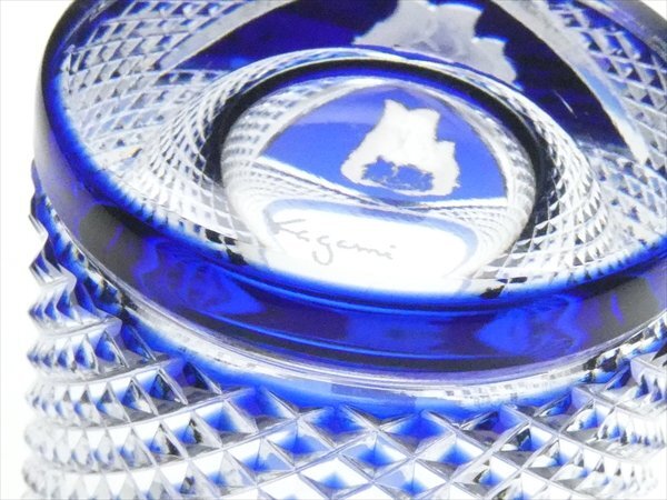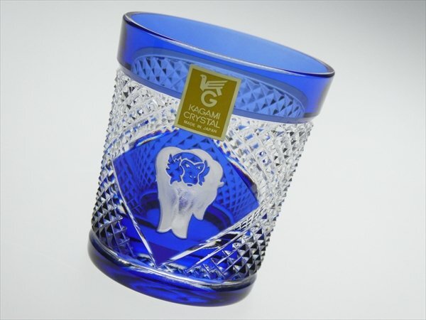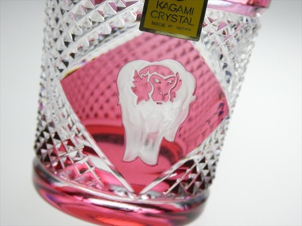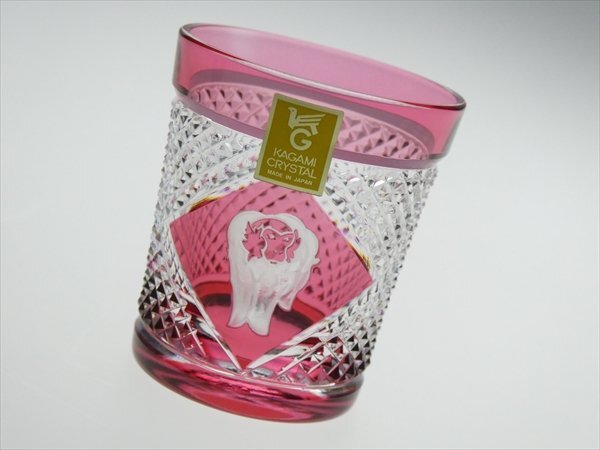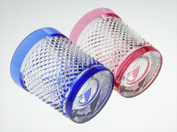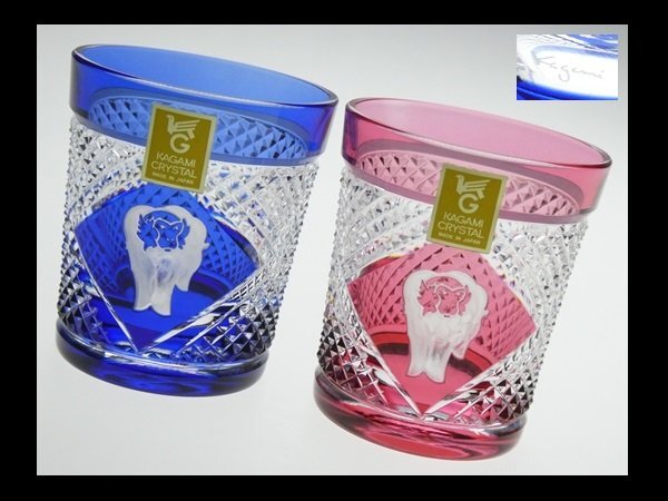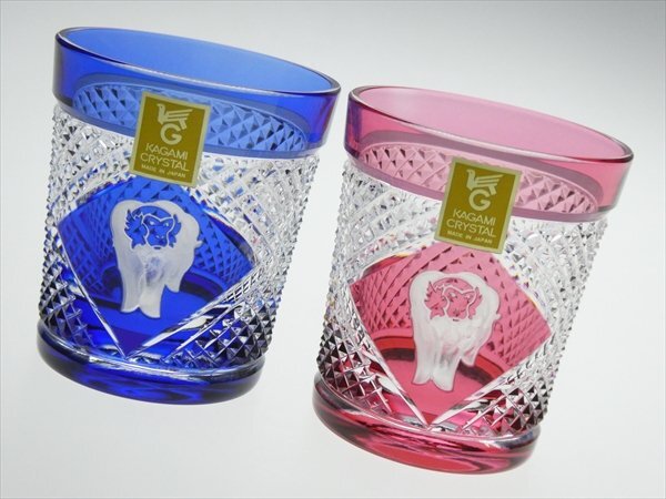 カガミ クリスタル 高級シリーズ 江戸切子 色被せ 切子ガラス 猿絵 ぐい呑 懐石盃 酒盃 酒器 二色 二客 n146