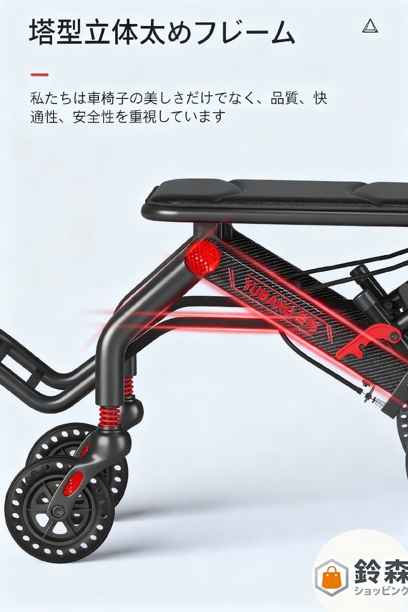 12インチ衝撃吸収超大型ホイール、厚手車椅子高齢者用歩行車、折りたたみ可能な軽量車椅子、二重サポートフレームの小型手押し歩行車