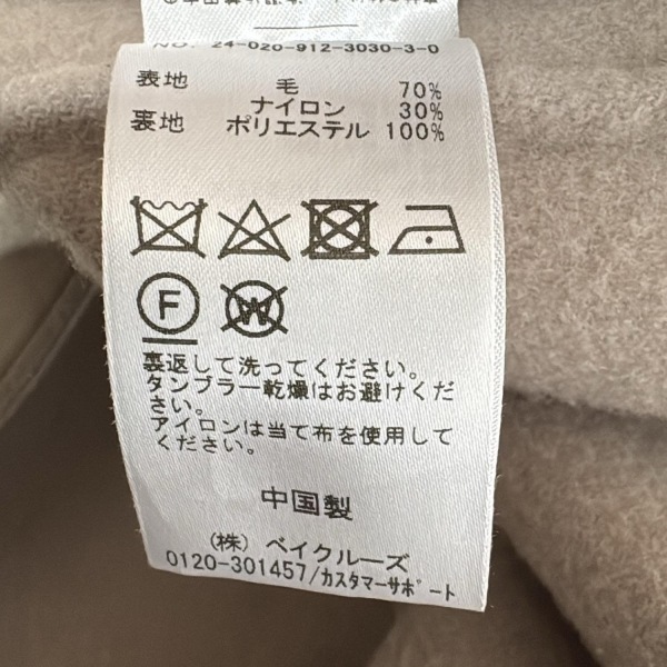 スローブイエナ SLOBE IENA 24020912303030 スープル ウールダブルフェイスノーカラーコート ベージュ レディース 長袖/秋/冬 美品 コート
