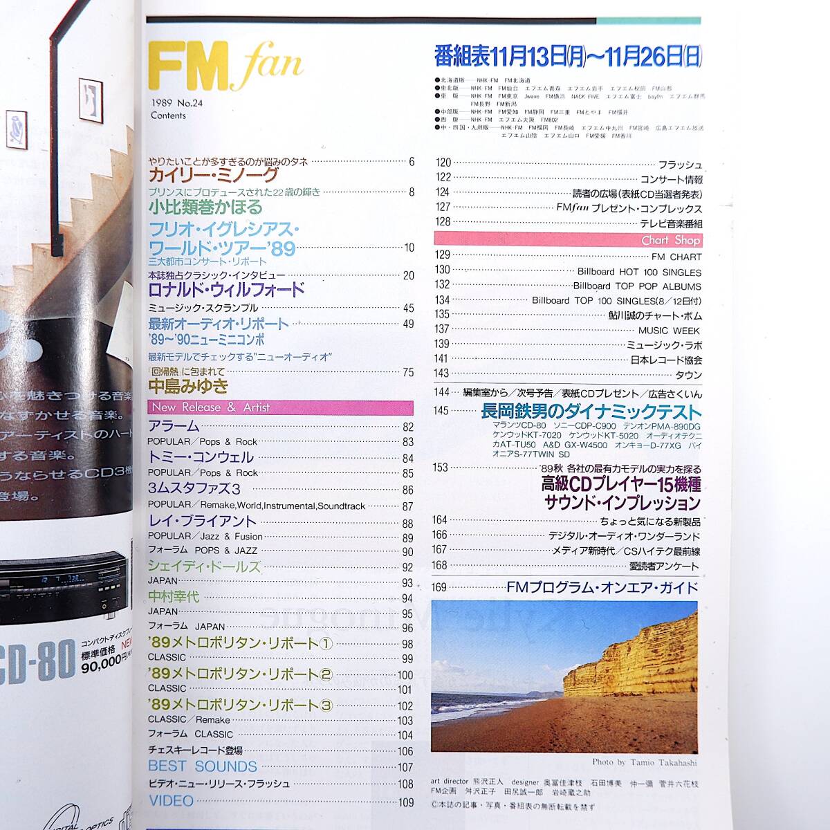 FM fan 1989年11月13日号/中島みゆき 小比類巻かほる カイリー・ミノーグ 中村幸代 アラーム 3ムスタファズ3 エフエムファン北海道版