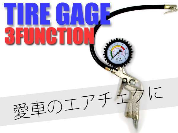 3ファンクション アナログ式 タイヤゲージ 自動車 バイク 空気入れ 空気圧調整 加圧 減圧 エア抜き チェック エアーカプラー付