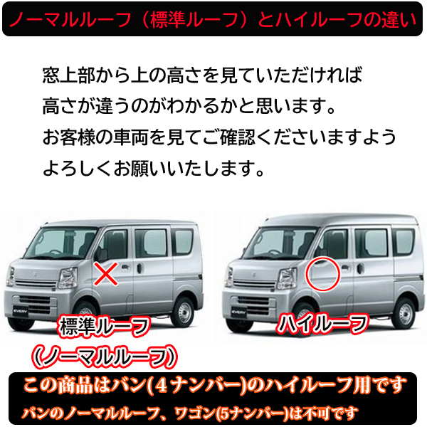 ★超省電力が特徴です★ 純正消費電力:フロント8w、リヤ8w 本商品消費電力:フロント1.1w、リヤ1.2w 車中泊やリヤゲートを開けたまま作業する方へもオススメです。 3chipSMDチップ採用の車種専用ルームランプ、【純白の白さ】をお求めの方へオススメです。 3チップの圧倒的明るさと感動的明るさを体感してください! 専用設計ですので取付も純正と交換するだけの簡単取付。 ◆微電流カットリレー内蔵タイプ◆ 一部の減光調整付きのお車では、微弱電流によりドアを閉めても全消灯しない(うっすらと点灯している)ケースがありましたが、こちらの商品はゴースト点灯防止リレー(微電流カットリレー)を内蔵しておりますので、その心配はありません。 2022年4月以降の車両に適合します。2022年3月までの1~4型は装着不可となります。(詳しくは写真5枚目をご確認ください) ■車種:エブリィバン ※ハイルーフ専用です、ノーマルルーフ(標準ルーフ)とワゴン(5ナンバー)は装着不可です。 ■型式:DA17V