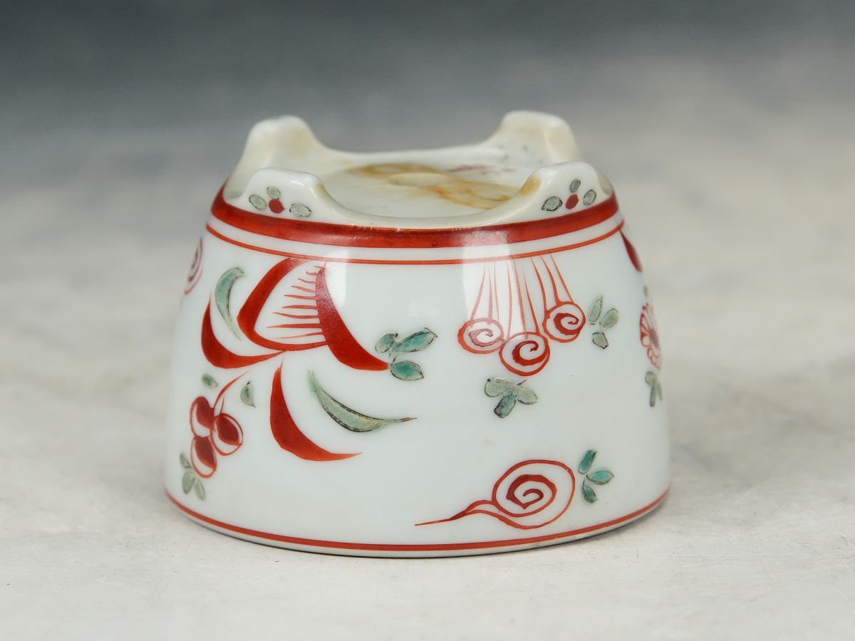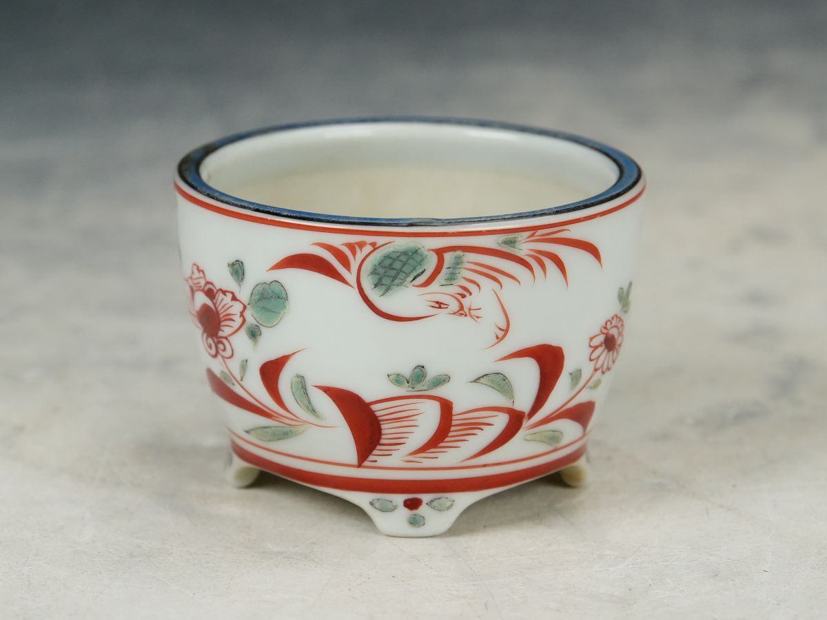【ISBS】日本古窯 九谷焼 九谷錦谷作「錦谷色絵花鳥風月図切立切足丸鉢」発色抜群 古色感最高 繊細なライン 間口約6.6cm[Y2025112205]