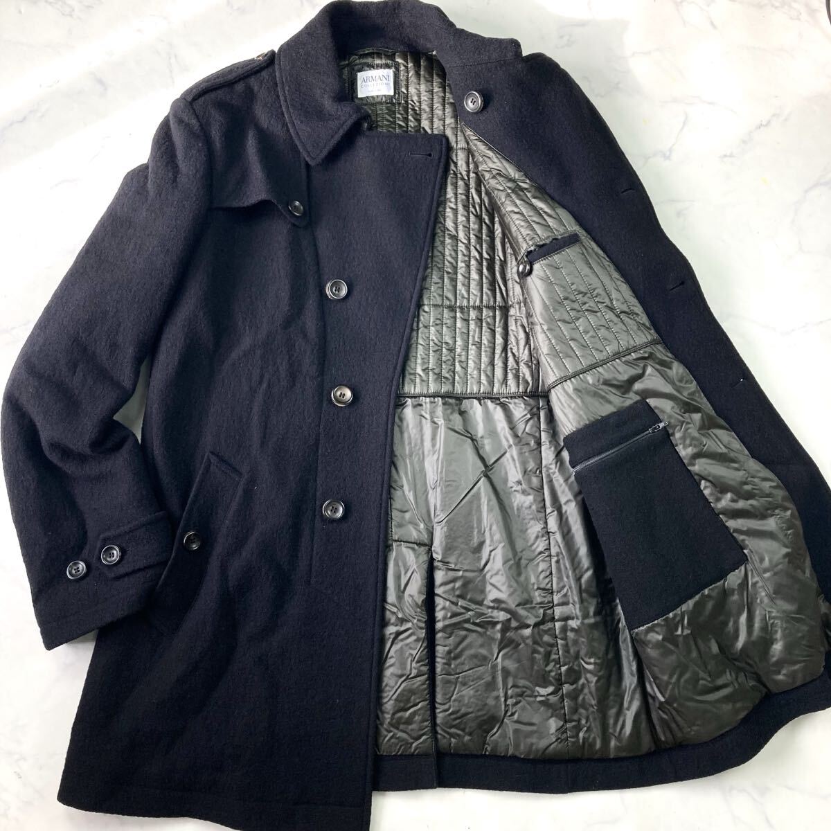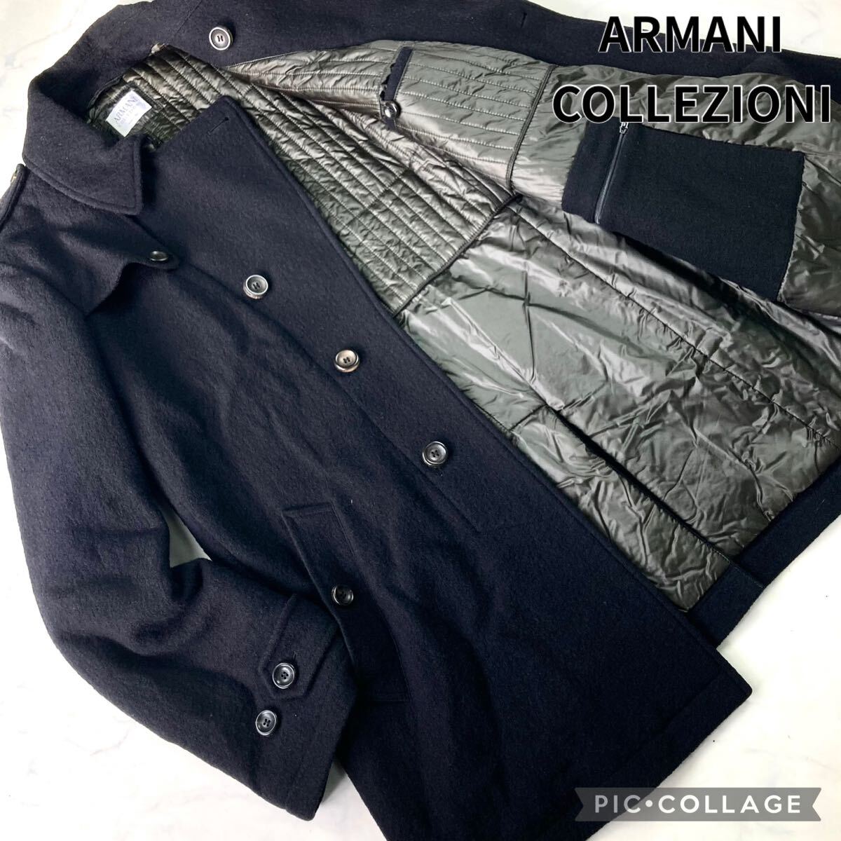 美品 XL位 ARMANI COLLEZIONI アルマーニコレツィオーニ ロングコート ジャケット 中綿 変形デザイン ウール 黒 ブラック メンズ 50