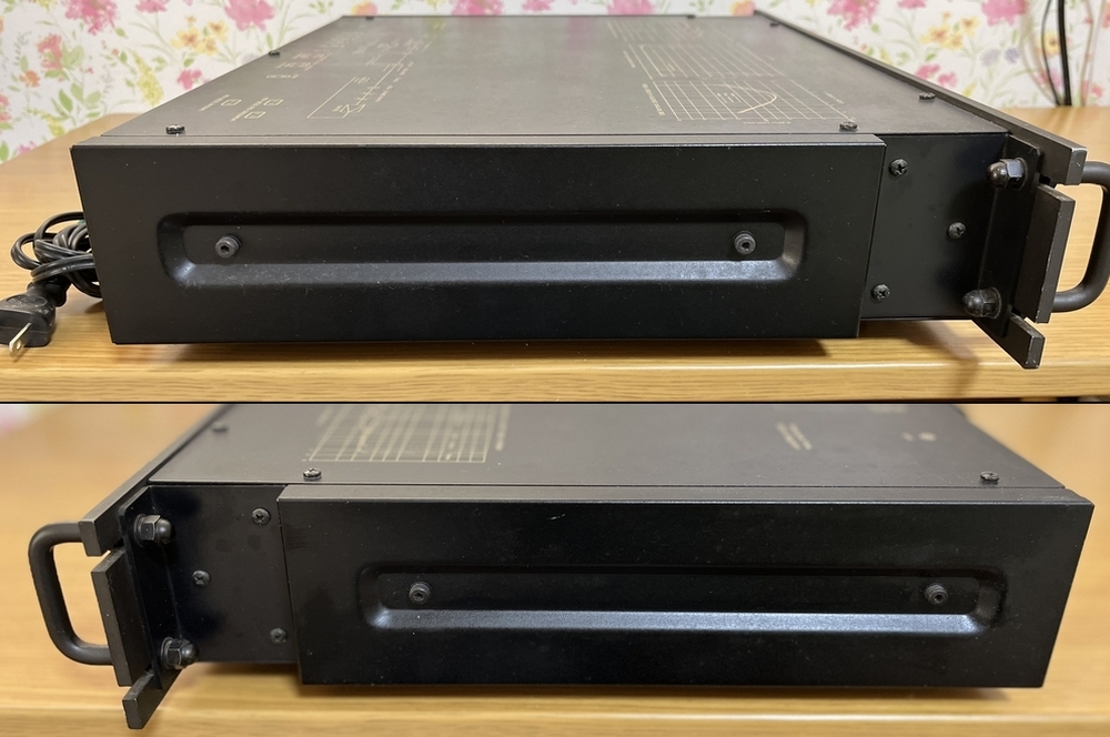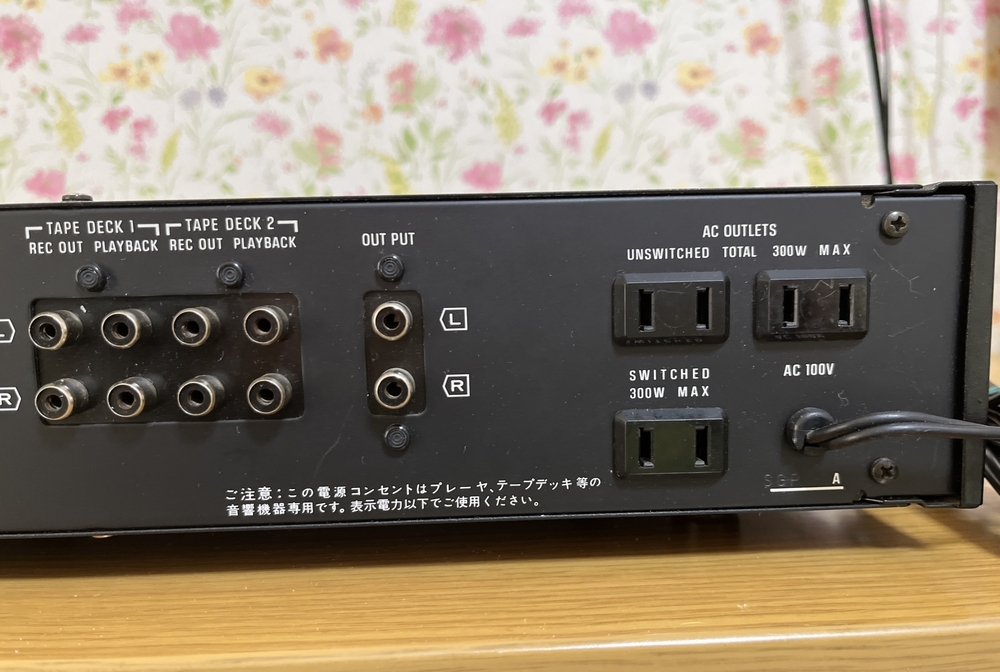 一応正常動作したと思われますが、古いものなのでご使用される環境や接続される機器の特性により必ずしも再現するとは限りません。フロントパネルの左ハンドルに一部塗装が塗装落ちあり、スイッチやボリュームに接触不良による不具合やガリ音が出ます。