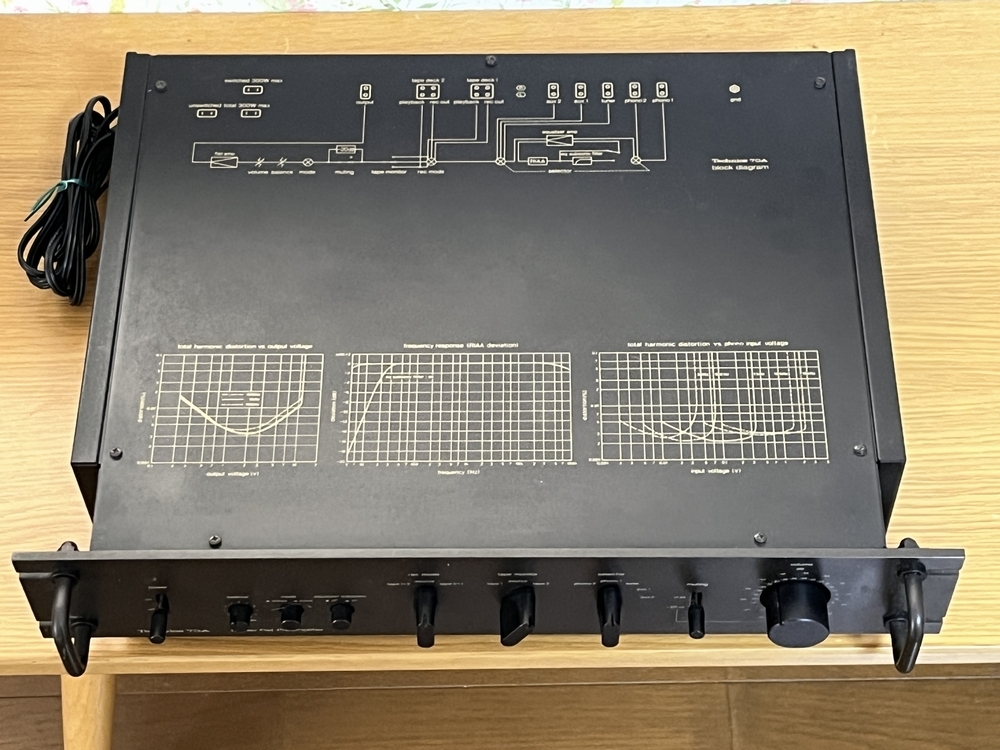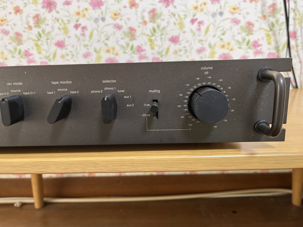 1970年代の古いプリアンプですが定価7万円と、当時私の安月給では高嶺の華でした。10年ほど前にオークションで入手、整備してしばらく使っていましたが、PHONO入力がMCカートリッジに対応していなかったため他機種(70AⅡなど)に交換、そのまま保管していたものです。