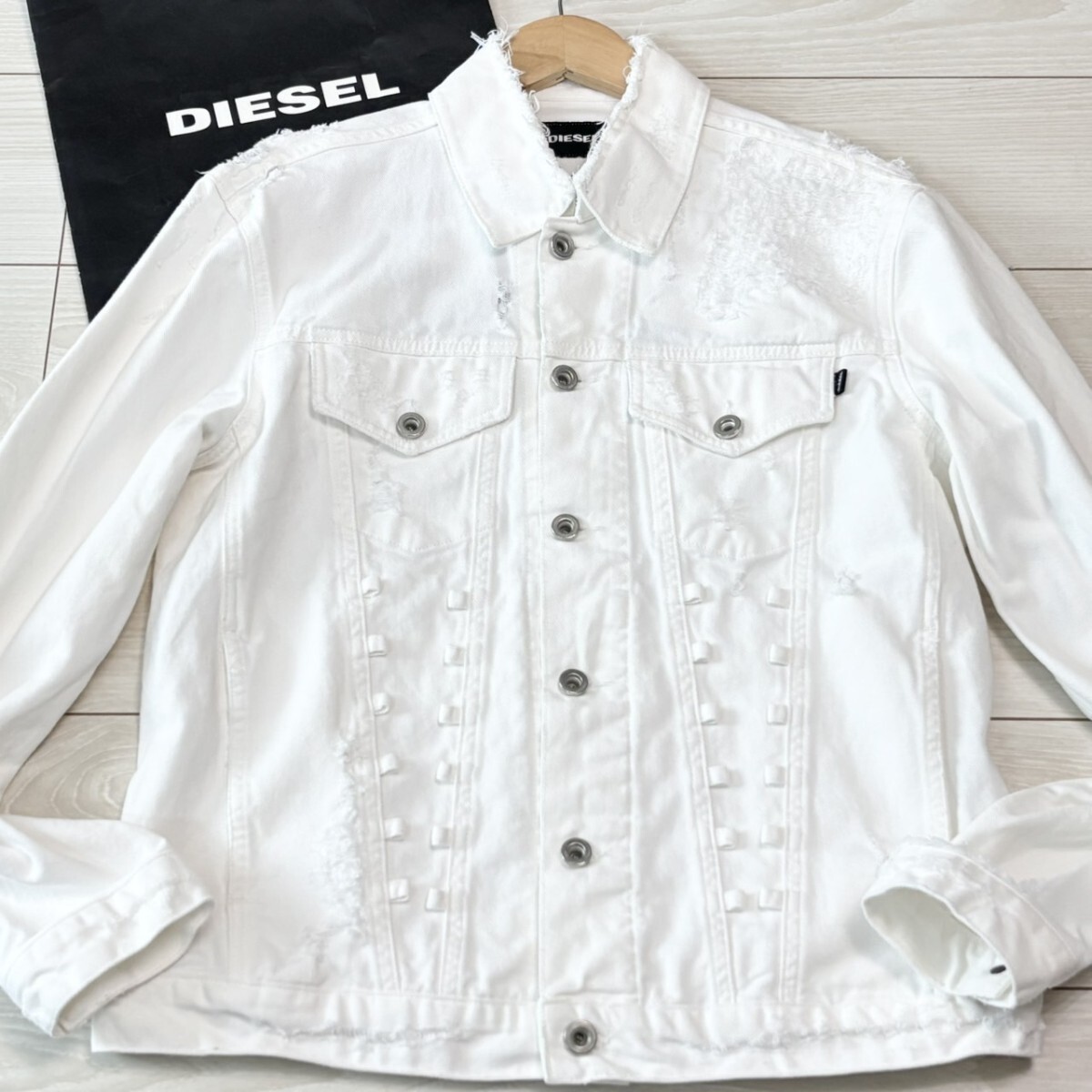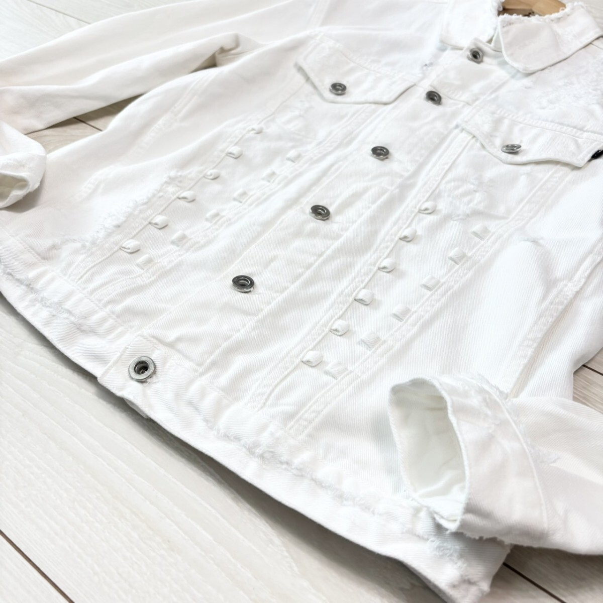 極美品/Mサイズ相当●DIESEL ディーゼル ホワイトデニムジャケット クラッシュダメージ加工 長袖 Gジャン ブルゾン ホワイト アウター