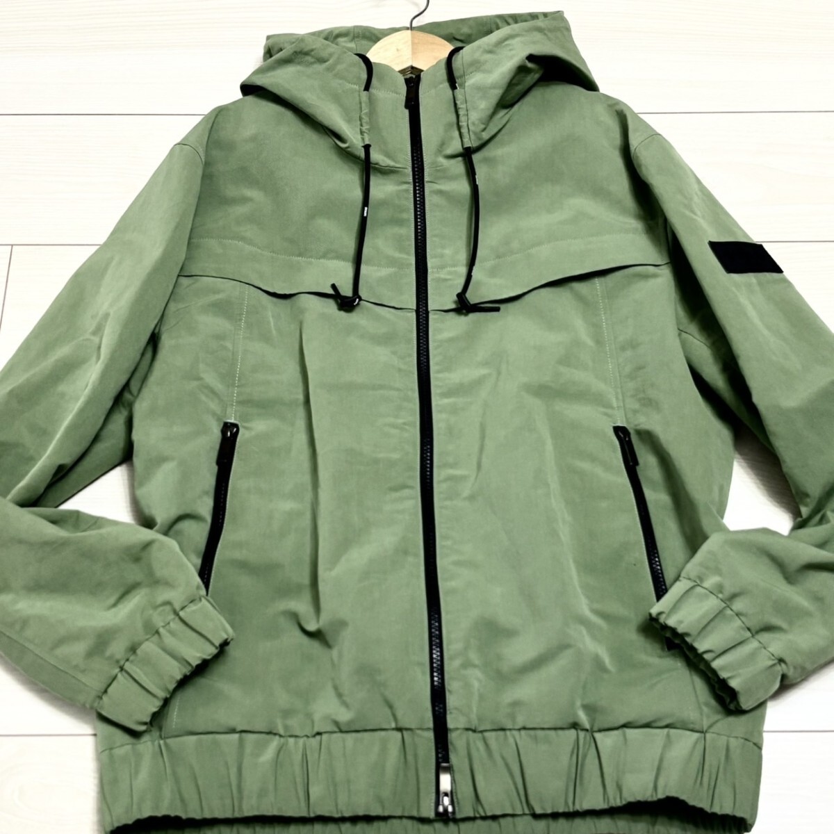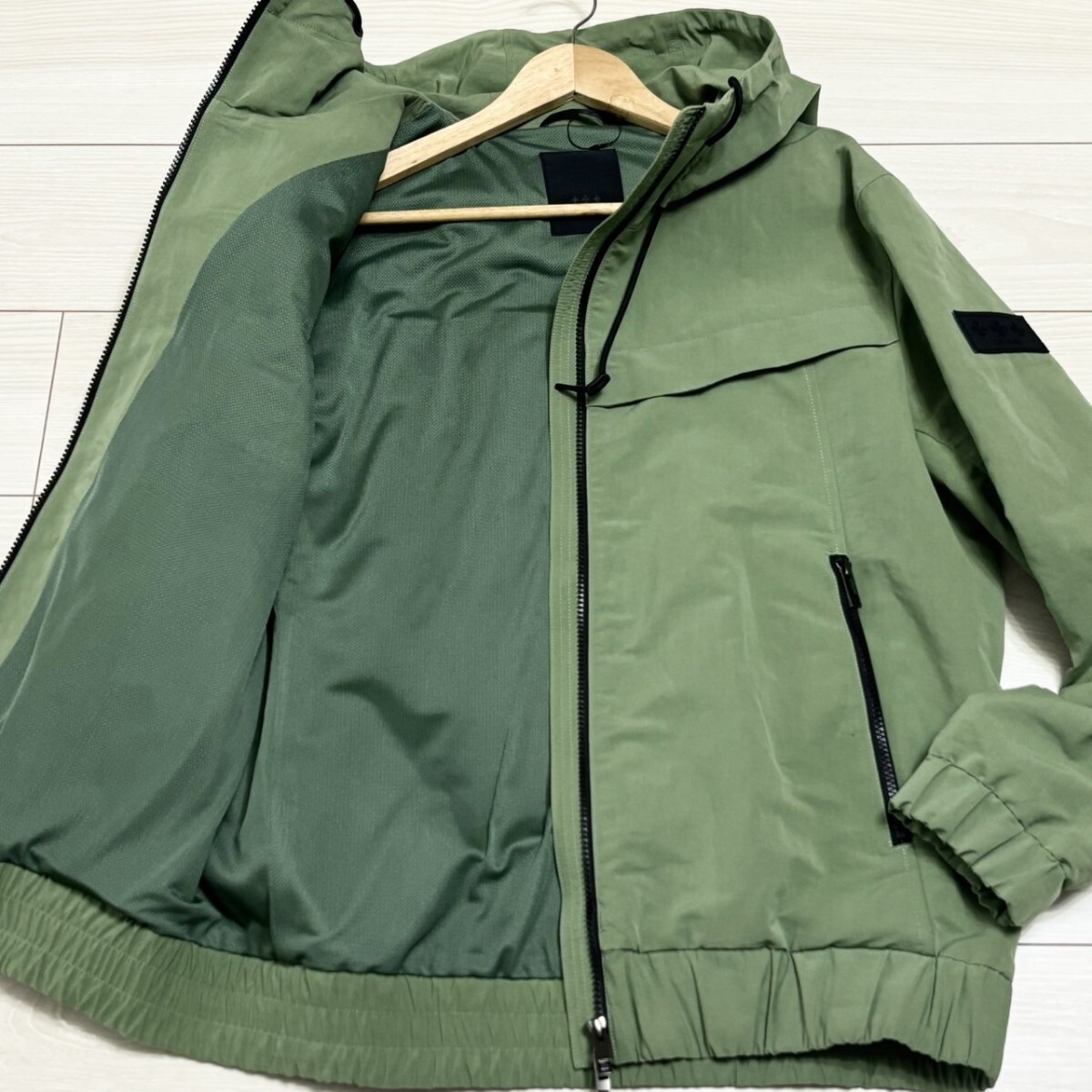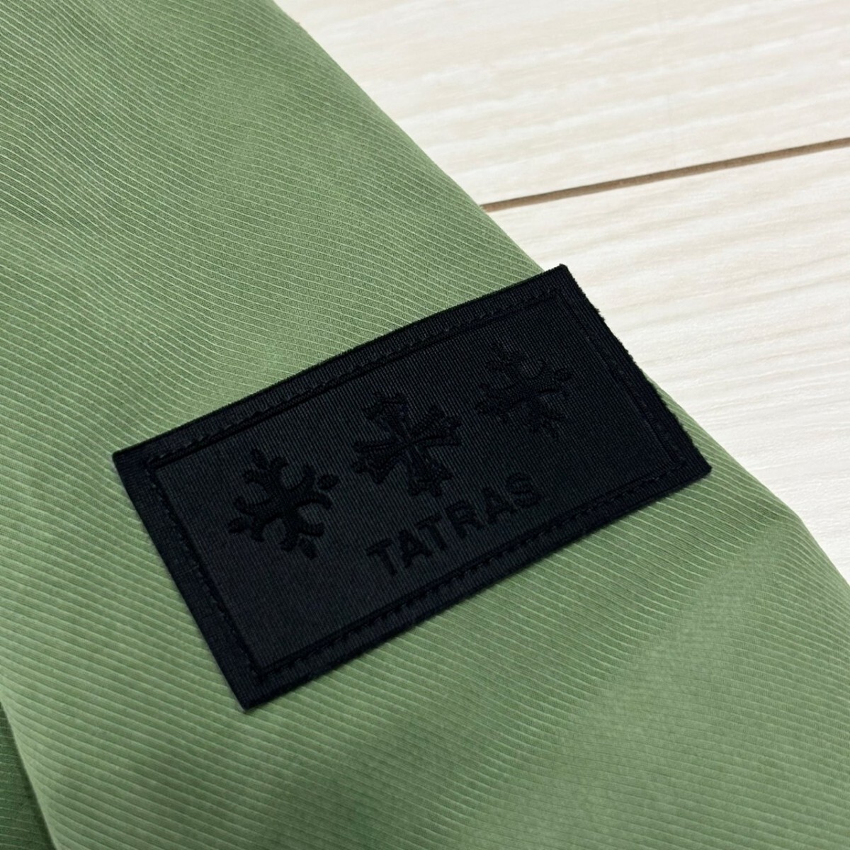 美品/L(03)サイズ相当●TATRAS タトラス ナイロン ジャケット パーカー フーディー 袖ロゴワッペン 長袖 グリーン メンズ アウター