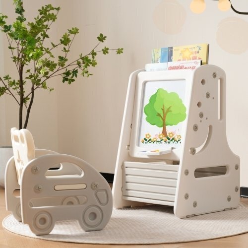 【多機能性の集大成】本製品は真に多機能性を備えています。正面のホワイトボードは子どもたちの学習と創造に役立ちますが、それに加えて、背面には絵本棚と小さなテーブルが統合され、読書、手作業、さらには小さなパーティーやゲームにも最適です。広範な用途をカバーし、子どもたちの多彩な活動をサポートします。