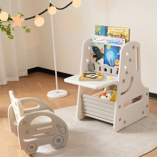 【空間節約のデザイン】絵本棚と小さなテーブルが背面に統合され、空間を有効活用できます。狭い部屋でも快適に使用することができます。