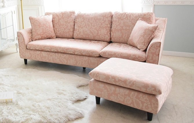【アウトレット】216,000円 カウチソファ 3人掛け ソファ オットマン 3WAY 輸入家具 ヨーロピアン エレガント ボニータピンク PK