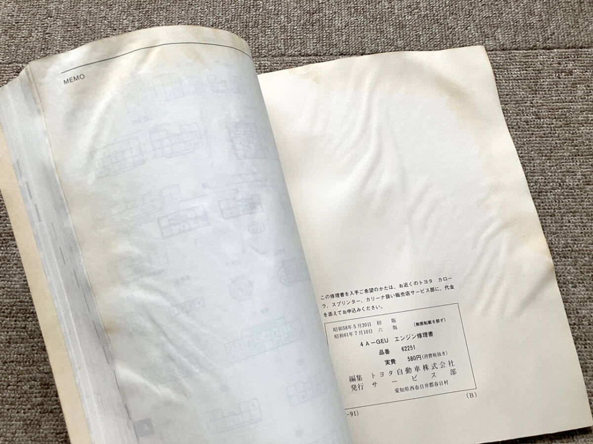 ★TOYOTA 4A-GEU エンジン修理書 ★希少品 ★工場で使用していたので汚いです ★送料無料で格安