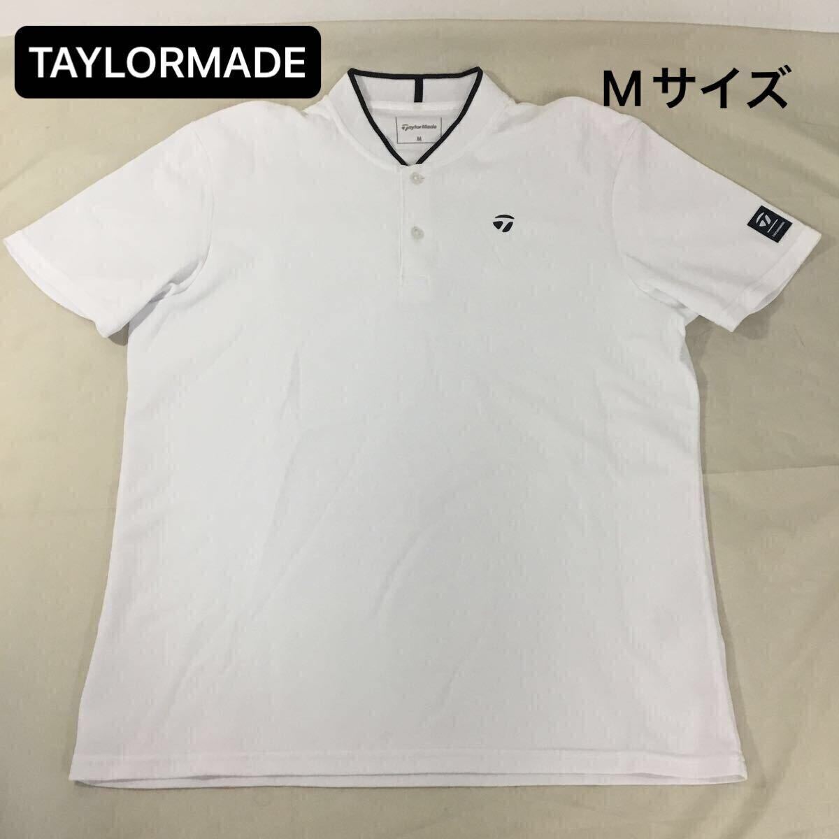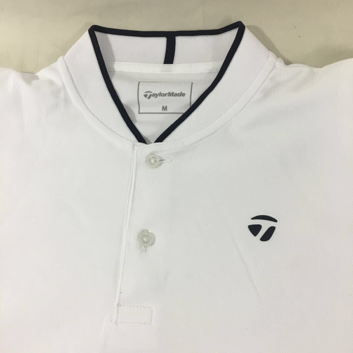②TAYLORMADE テーラーメイド ゴルフウェア 半袖 Mサイズ ノーカラー ポロシャツ ホワイト 白 GOLF スポーツ メンズ