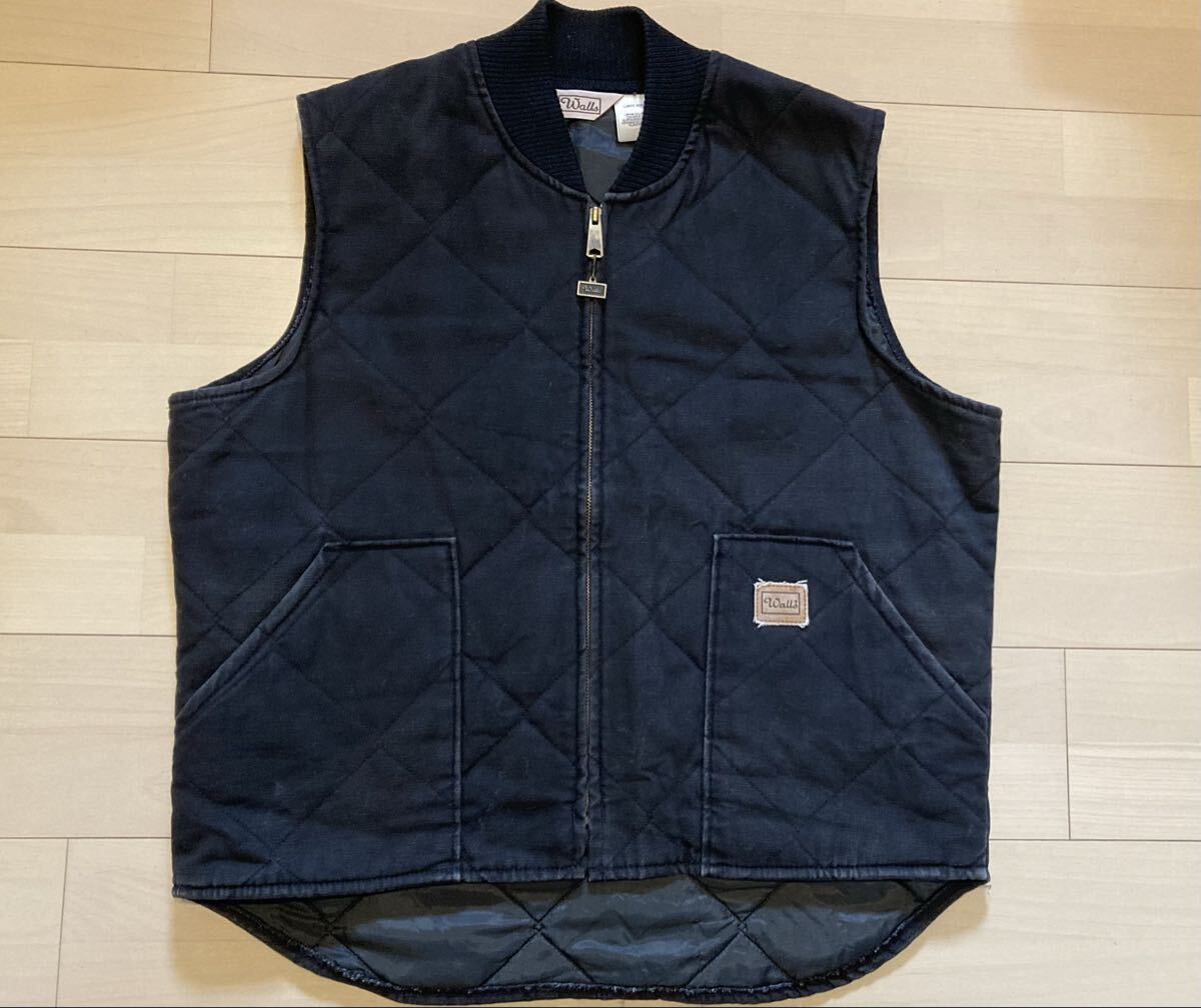 80s 90s Vintage USA製 Walls ダック生地 キルティング ベスト 黒 L / ビンテージ 古着 カーハート同型 アメカジ バイカー 中綿入り ワーク
