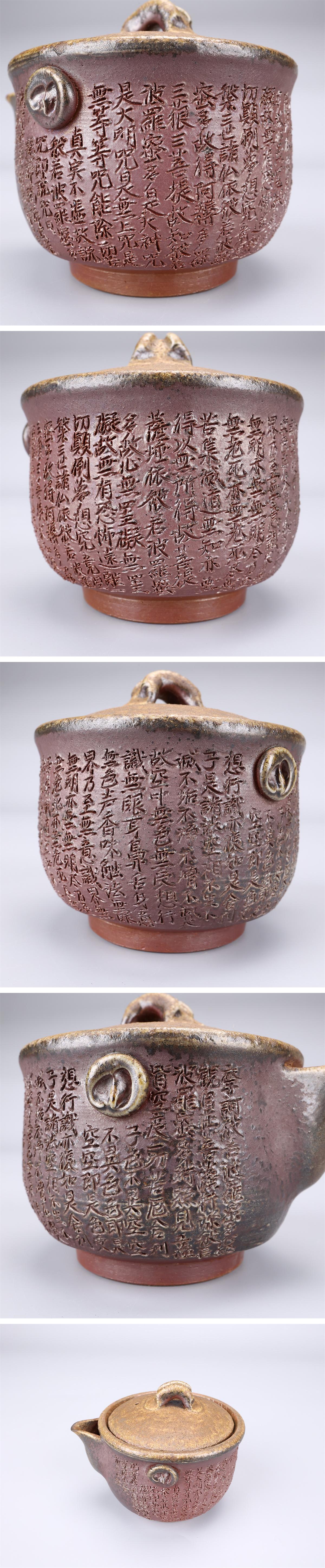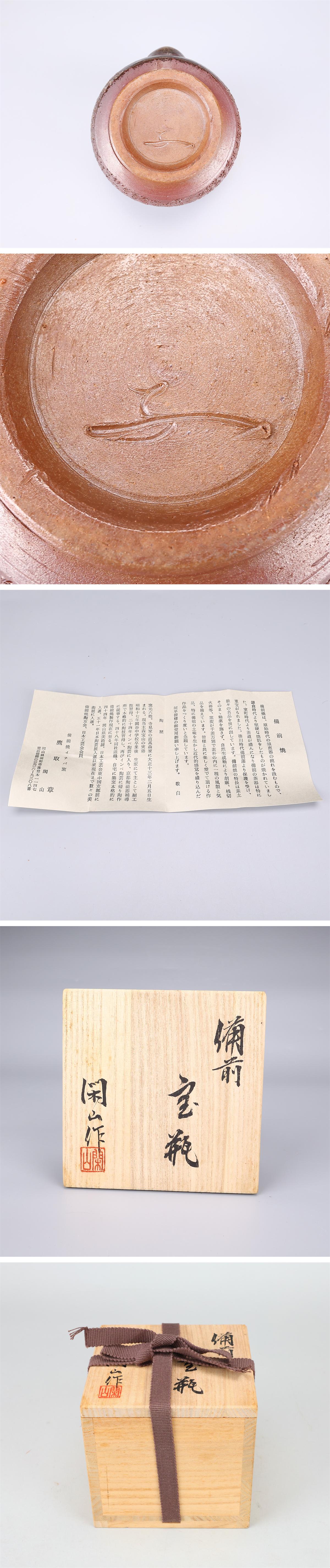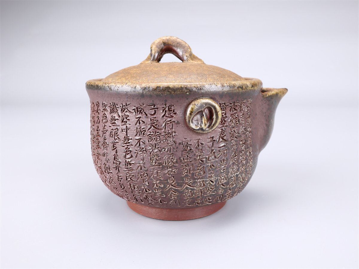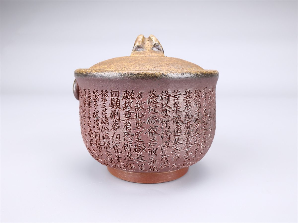 【吉】CL930 備前焼 【鷹取章(閑山)】作 般若心経 宝瓶/共箱付 美品S!