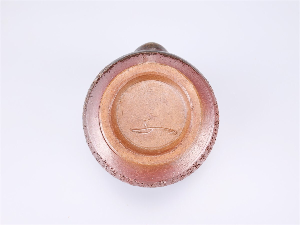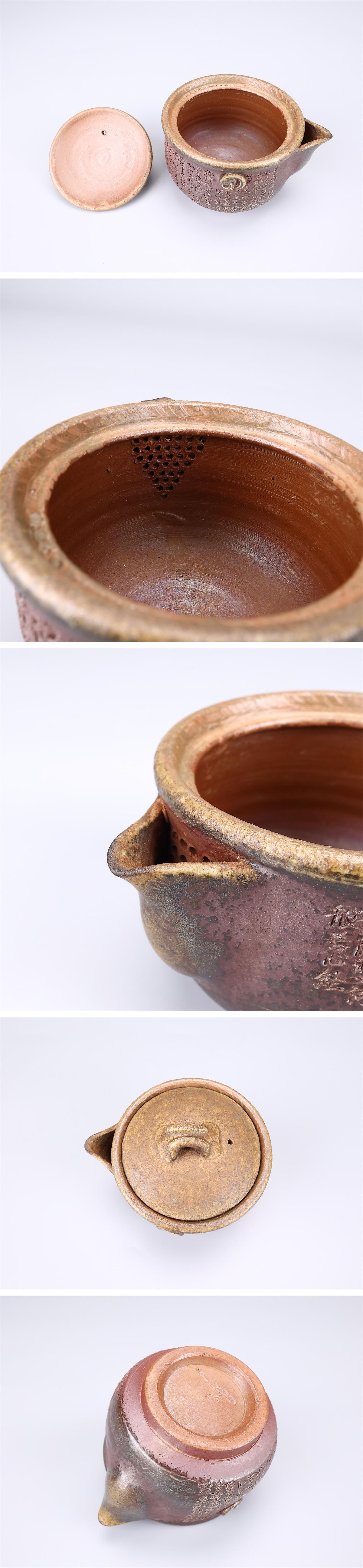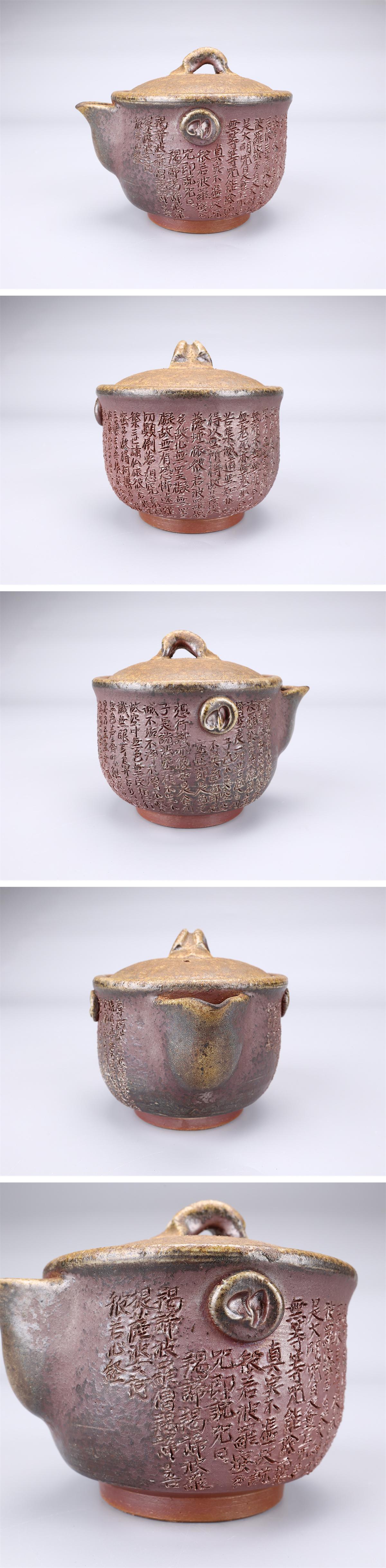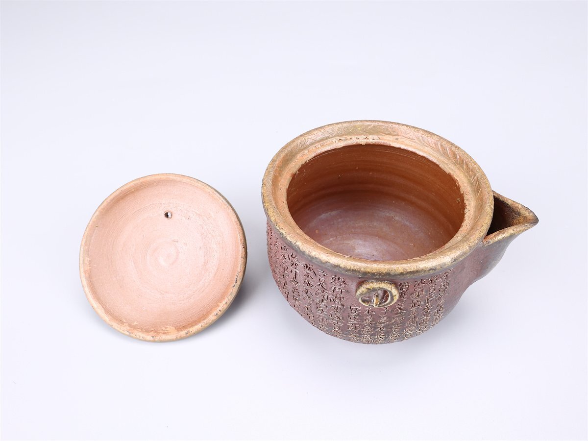 【吉】CL930 備前焼 【鷹取章(閑山)】作 般若心経 宝瓶/共箱付 美品S!