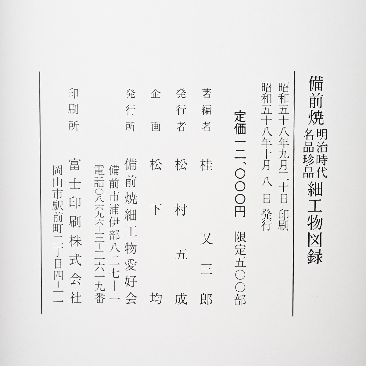 【限定500部】桂又三郎著『備前焼 明治時代名品珍品 細工物図録』昭和58年 備前焼細工物愛好会発行 富士印刷株式会社 白備前 古書 和本 D