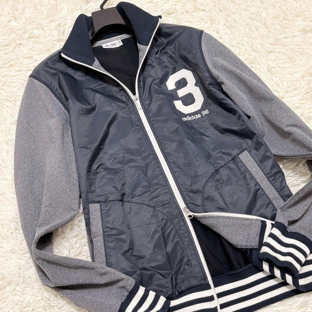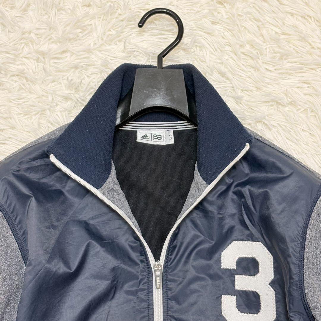 希少Lサイズ◎ アディダスゴルフ ADIDAS GOLF テーラーメイド ゴルフジャケット ブルゾン ネイビー ダブルジップ ナイロン切替え 3本ライン