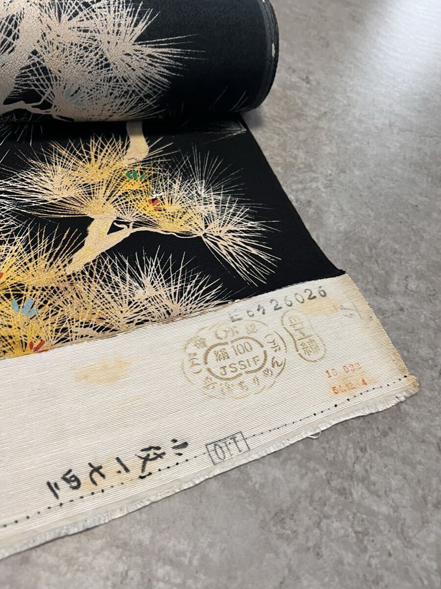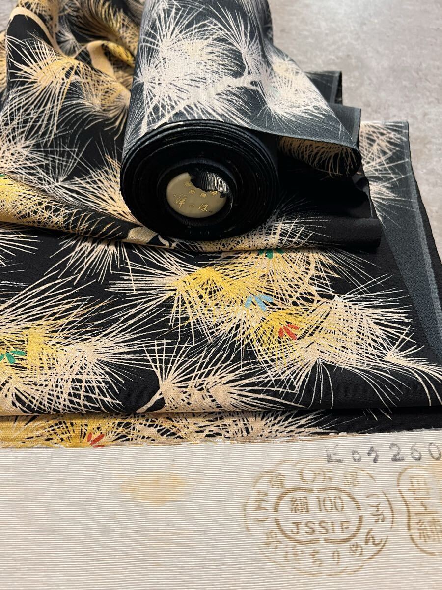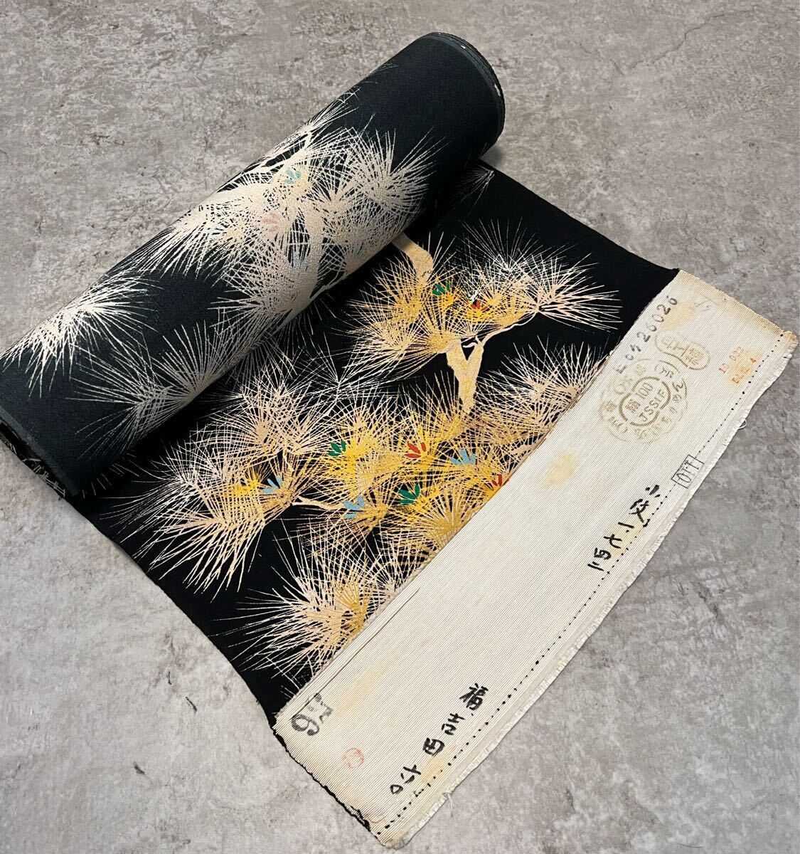 反物 絹100% 丹後ちりめん 松 小紋 生地 着物 丹工練
