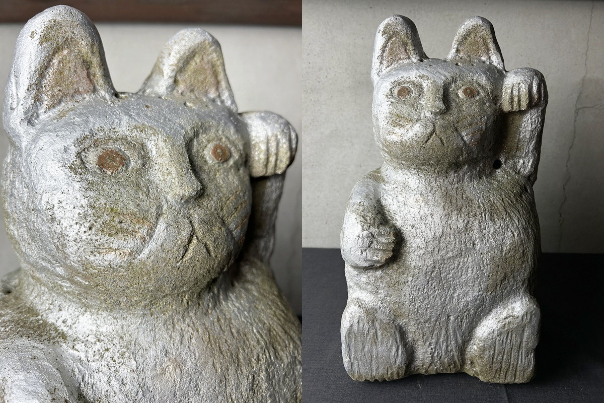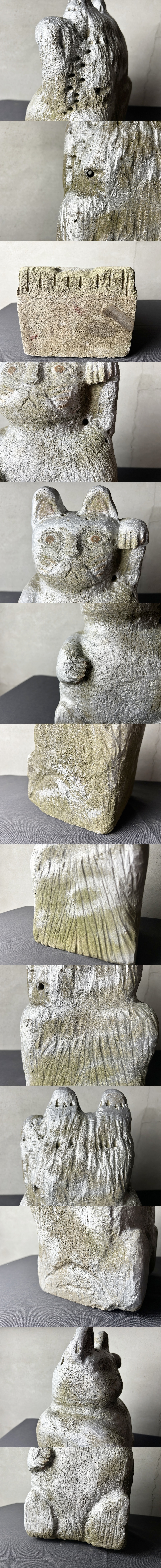 石製 彫刻 招き猫 置物 高さ36cm 重量16.15kg◇オブジェ/インテリア/飾り物/石造/庭石/縁起物/東洋彫刻/コレクション/レア