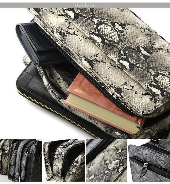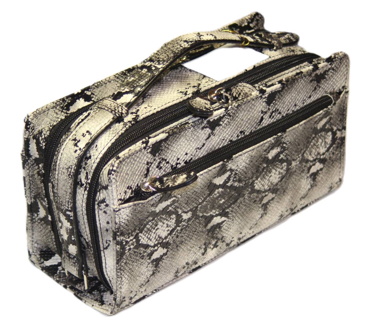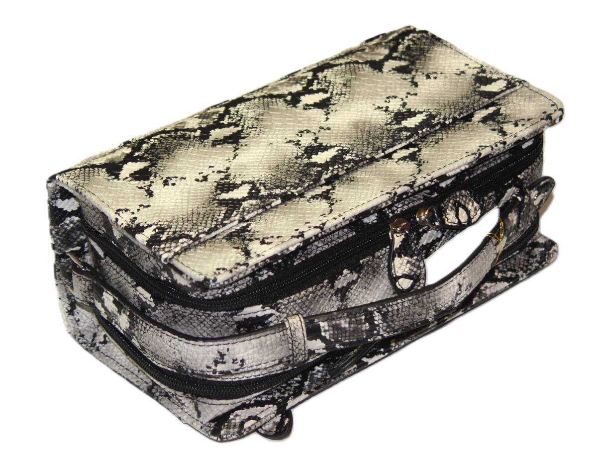 【ブラックフライデータイムセール】【送料込み】【限定】【新品】【税込み】リアルパイソン型押し☆Wファスナー式☆BOXセカンドバッグ WH