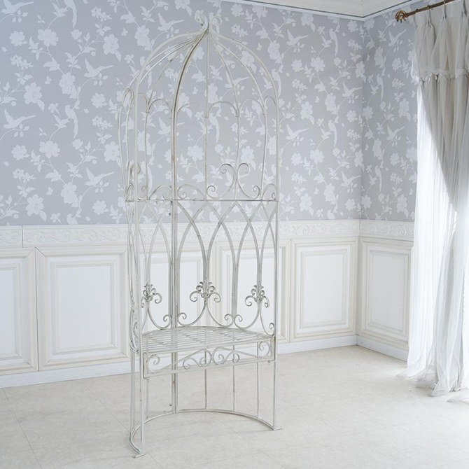 【アウトレット】167,000円 ガーデンベンチ パーゴラ 花台 ガーデンファンタジー アイアン ハーフムーンドームS ベンチ付 アンティーク調