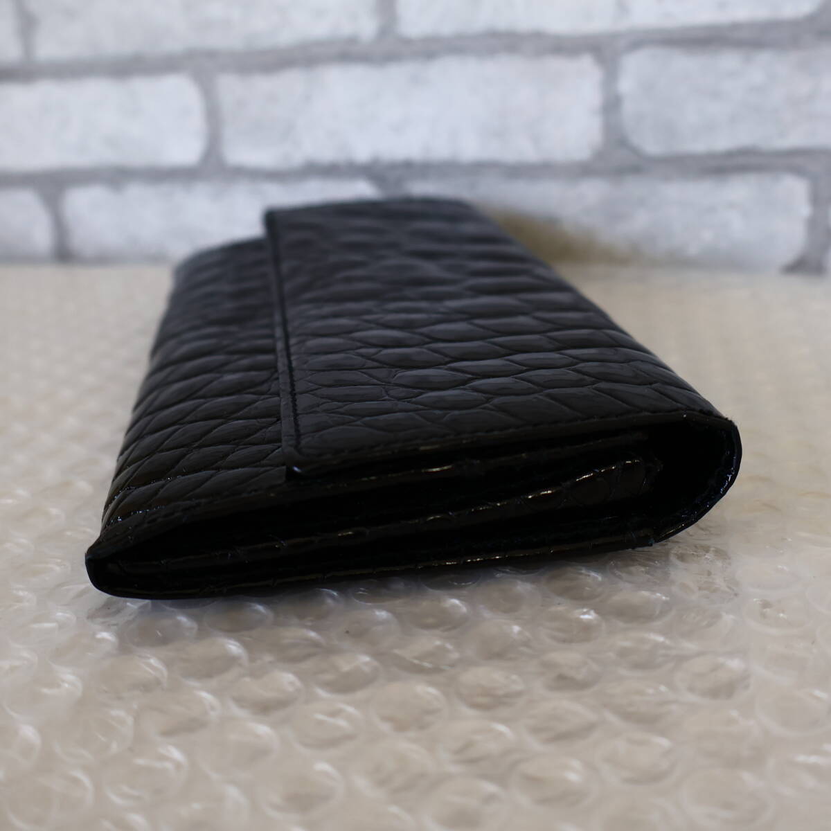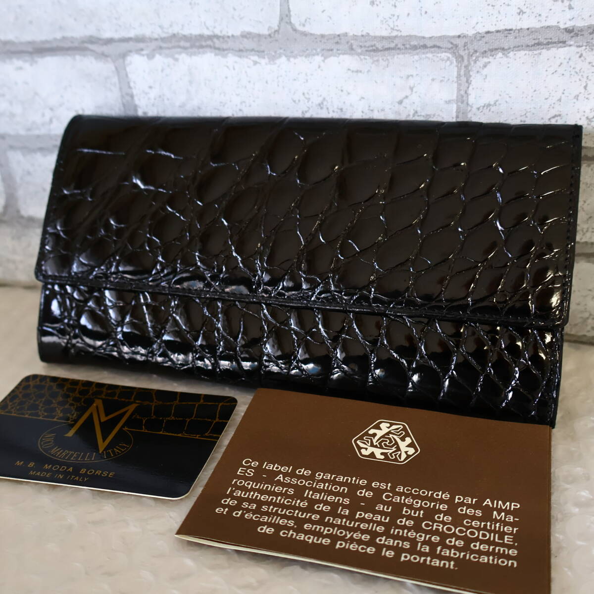 ◆未使用品*NICO MARTELLI*シャイニークロコダイル*クロコダイル*リアルクロコ*コインケース付き*レザー*長財布*財布*ウォレット*黒◆