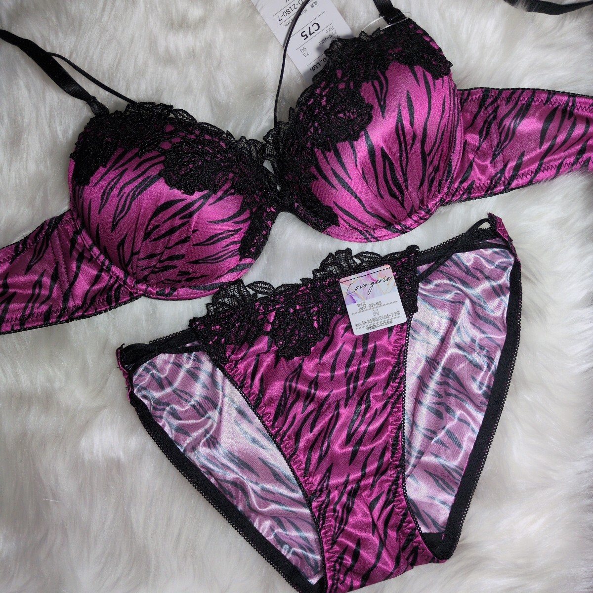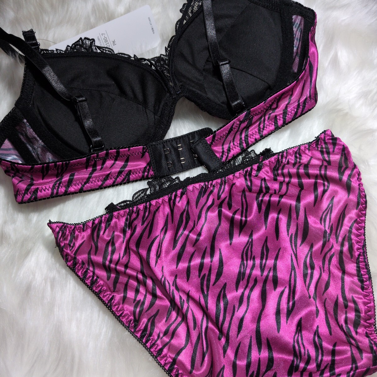 C75☆М Sexy ブラ☆クロスストリングパンティ サテンのような光沢のあるツルツル生地 薔薇レースモチーフ