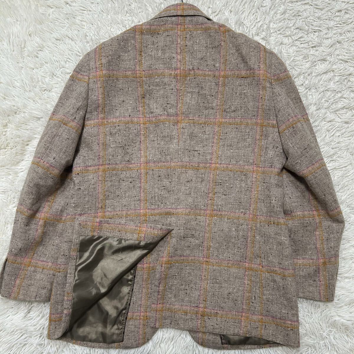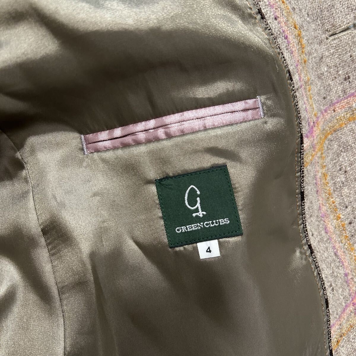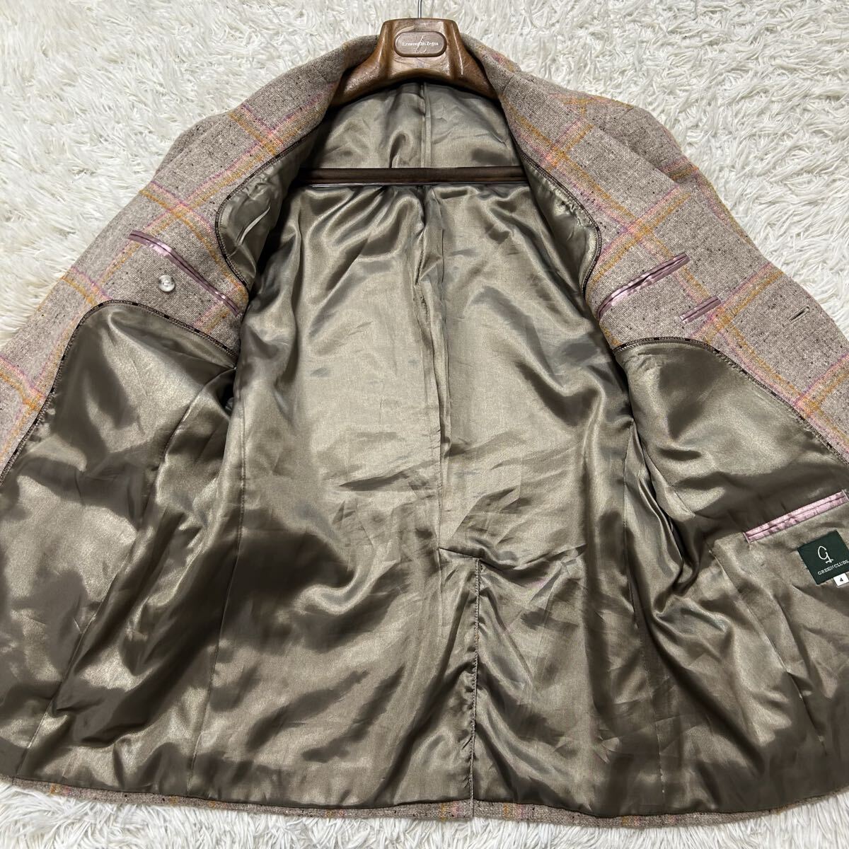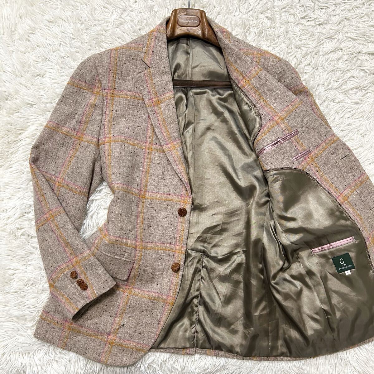 希少XL相当!!!グリーンクラブ【至高の逸品】GREEN CLUBS テーラードジャケット ツイード くるみボタン チェック ベージュ