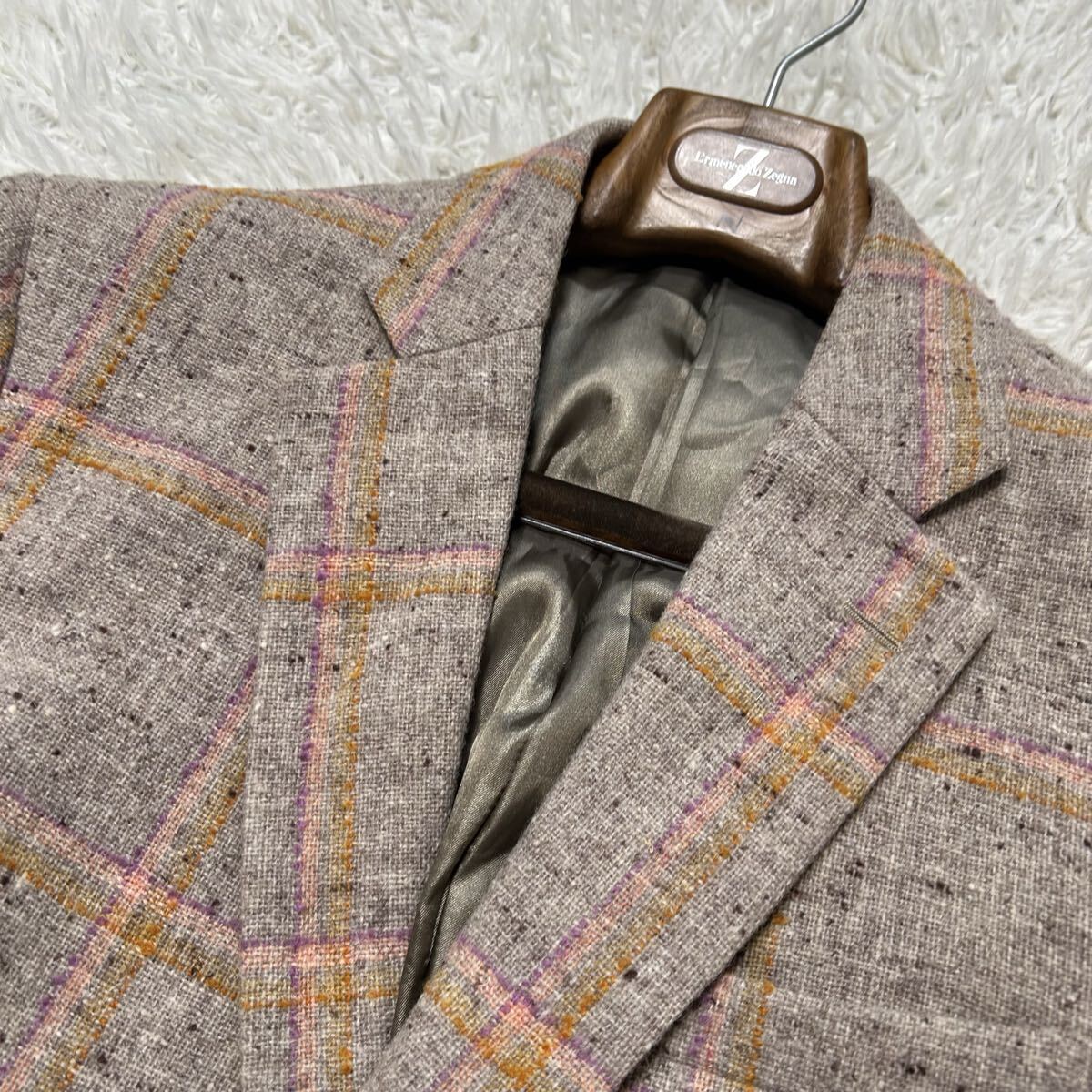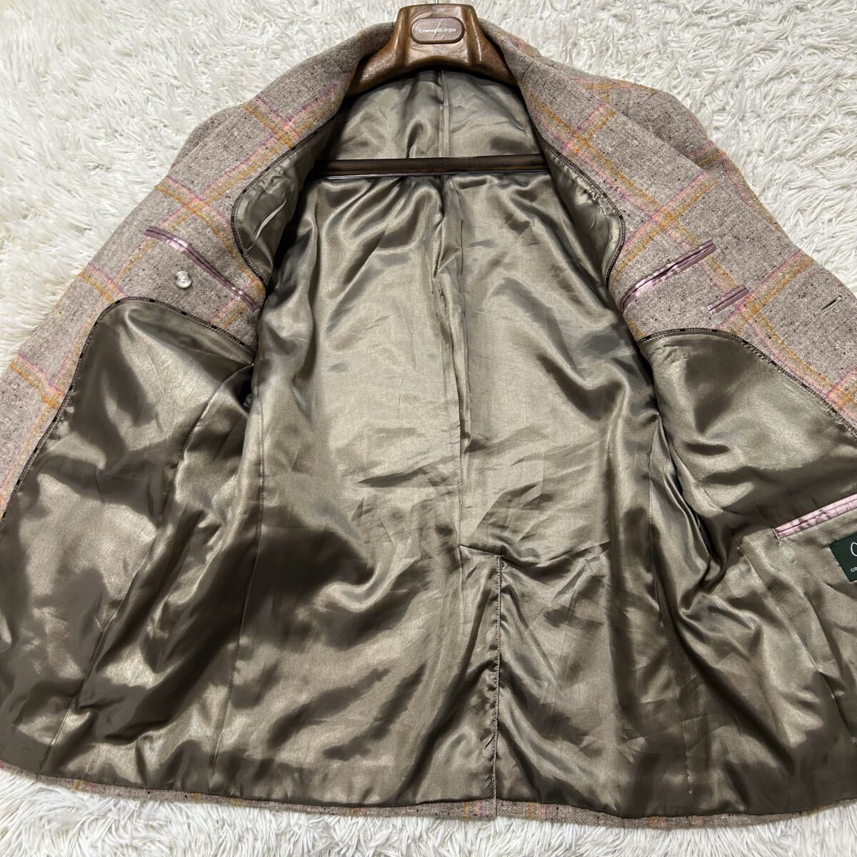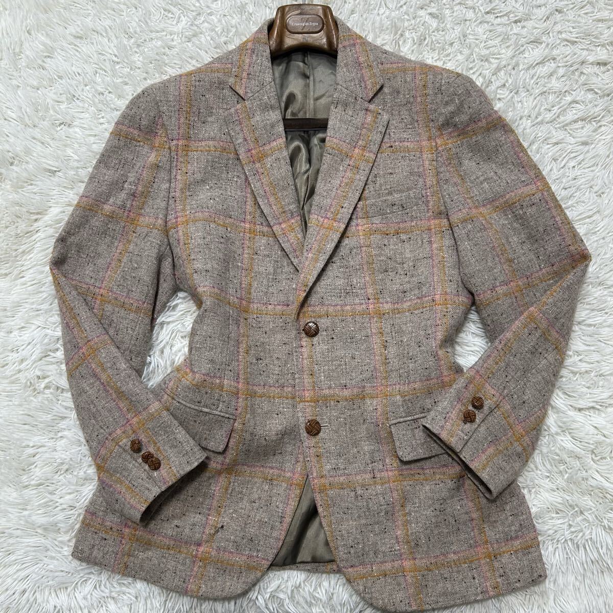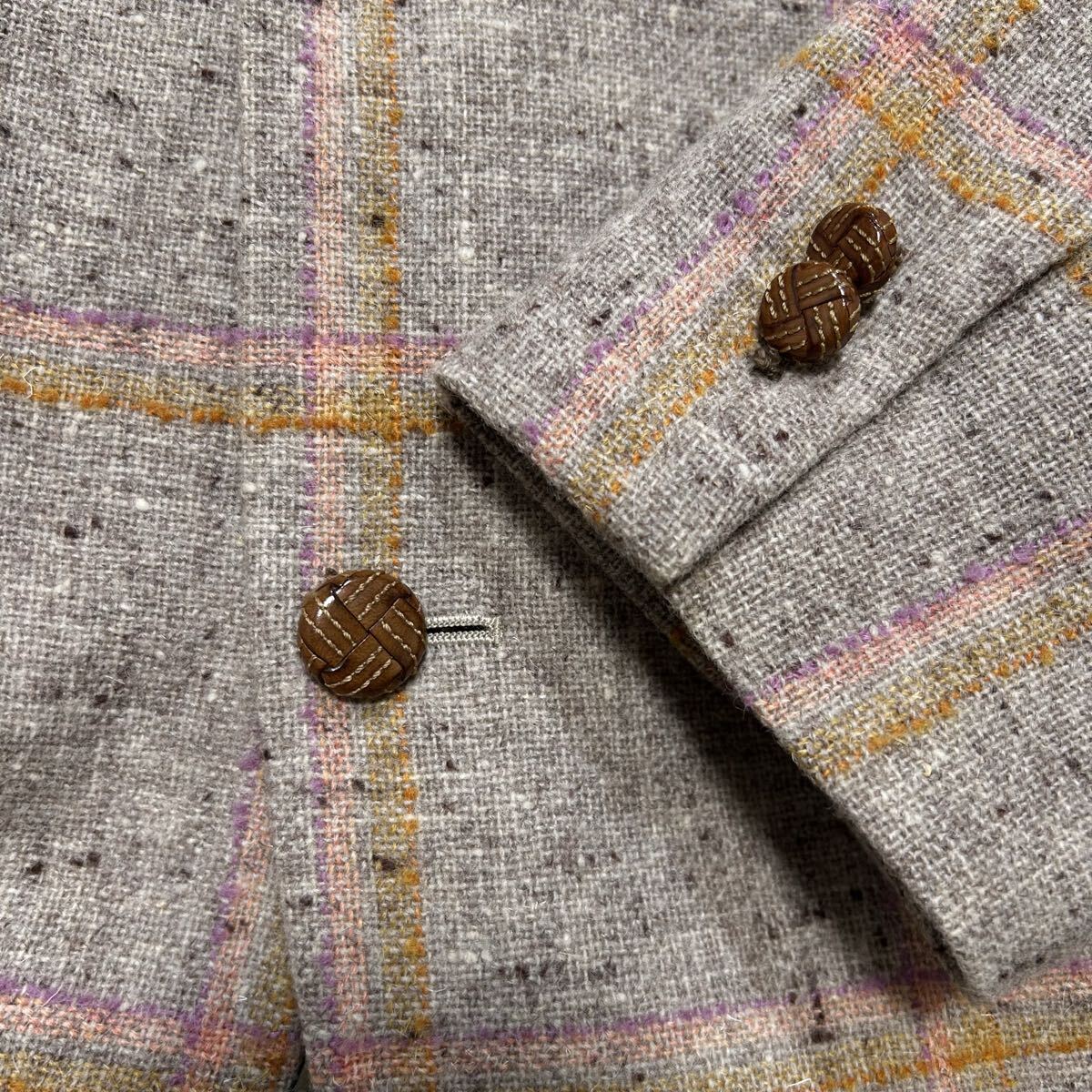 希少XL相当!!!グリーンクラブ【至高の逸品】GREEN CLUBS テーラードジャケット ツイード くるみボタン チェック ベージュ