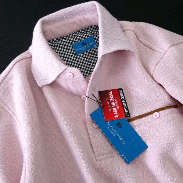 新品 ミエル 裏暖 フリース ジャージー 長袖 ポロシャツ LL 【TO22-1084_ピンク_LL】 MIERU AVANT-GARDE 秋冬 メンズ ニット 裏起毛