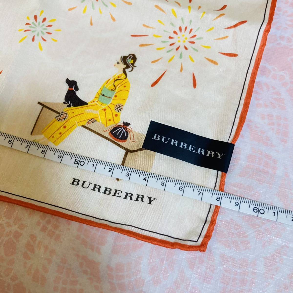 【人気柄】新品/BURBERRY/大判ハンカチ/正規品/バーバリー/スカーフ/未使用/即決/匿名発送/レディース/婦人/女の子/浴衣/犬/58cm/箱無し