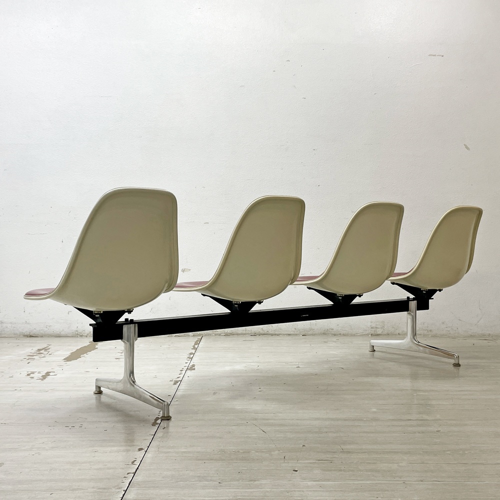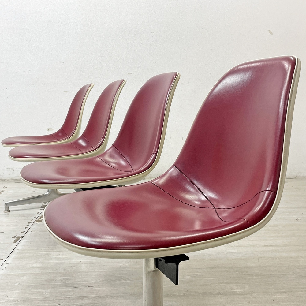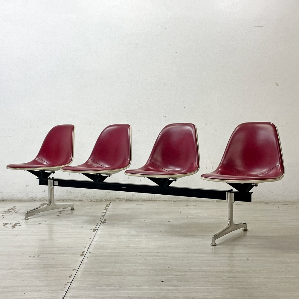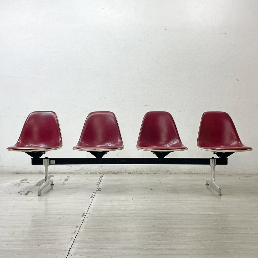 ● ハーマンミラー Herman Miller ビンテージ エアポートベンチ タンデムシート 4連 サイドシェル 3rd PVCレザー イームズ 希少