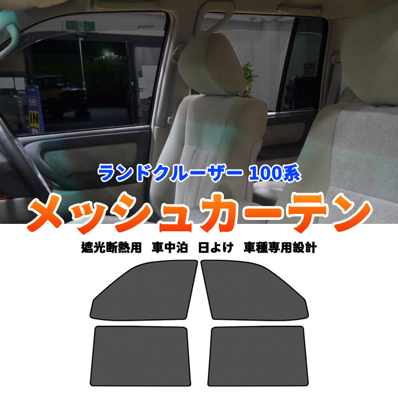 トヨタ ランドクルーザー 100系 メッシュカーテン サンシェード 4枚 網戸 遮光 ネット 車中泊 断熱 日よけ 日除け カーテン 内装 Y932
