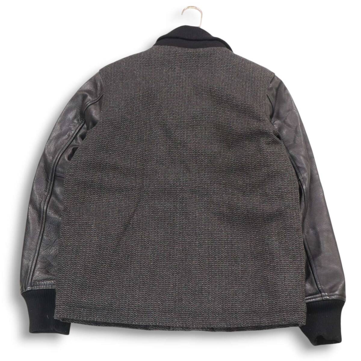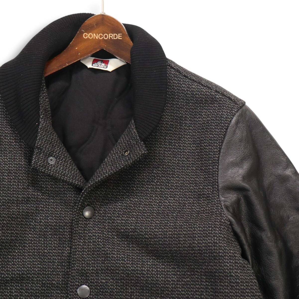 BEN DAVIS ベンデイビス 秋冬 袖革★ カウ レザー × ビーチクロス アワード ジャケット スタジャン Sz.S メンズ 黒
