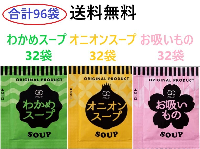 アミュード わかめスープ32袋 オニオンスープ32袋 お吸いもの32袋 送料無料 インスタントスープ 合計96袋