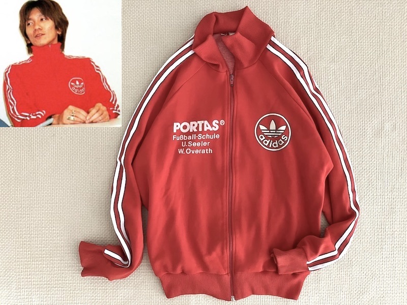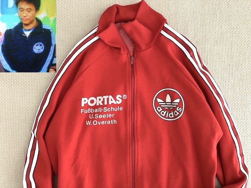 即決 1点物 80s ヴィンテージ アディダス ジャージ PORTAS 174 赤x白 丸ロゴ 吉井和哉 着 浜ちゃん 色違い ガキの使い adidas