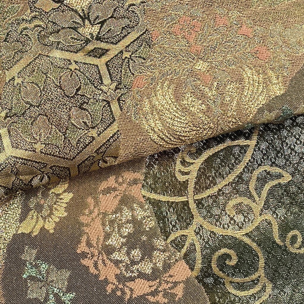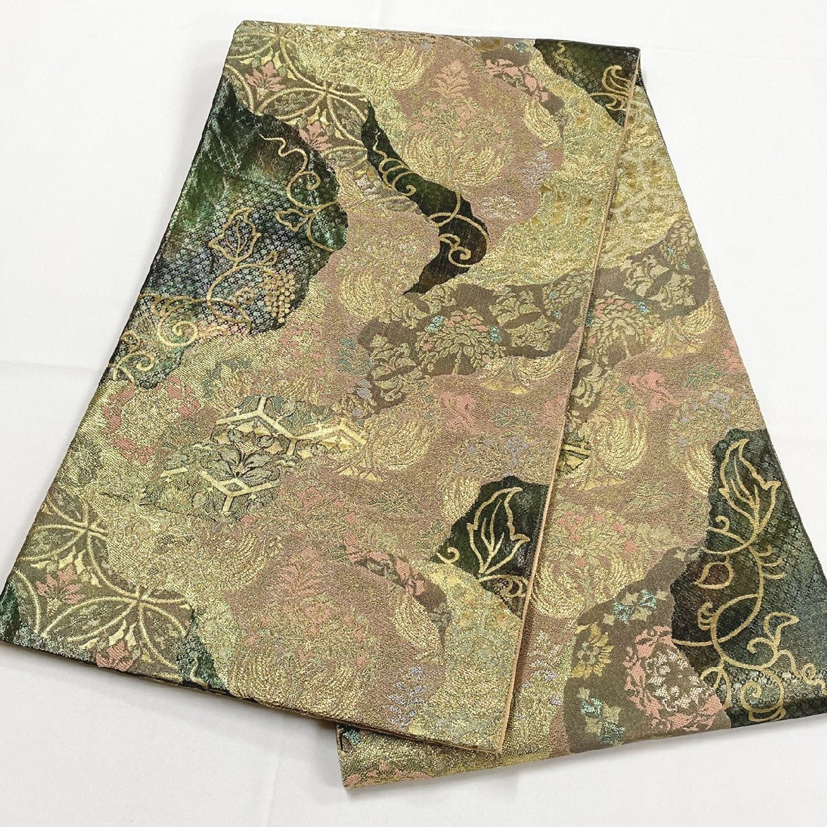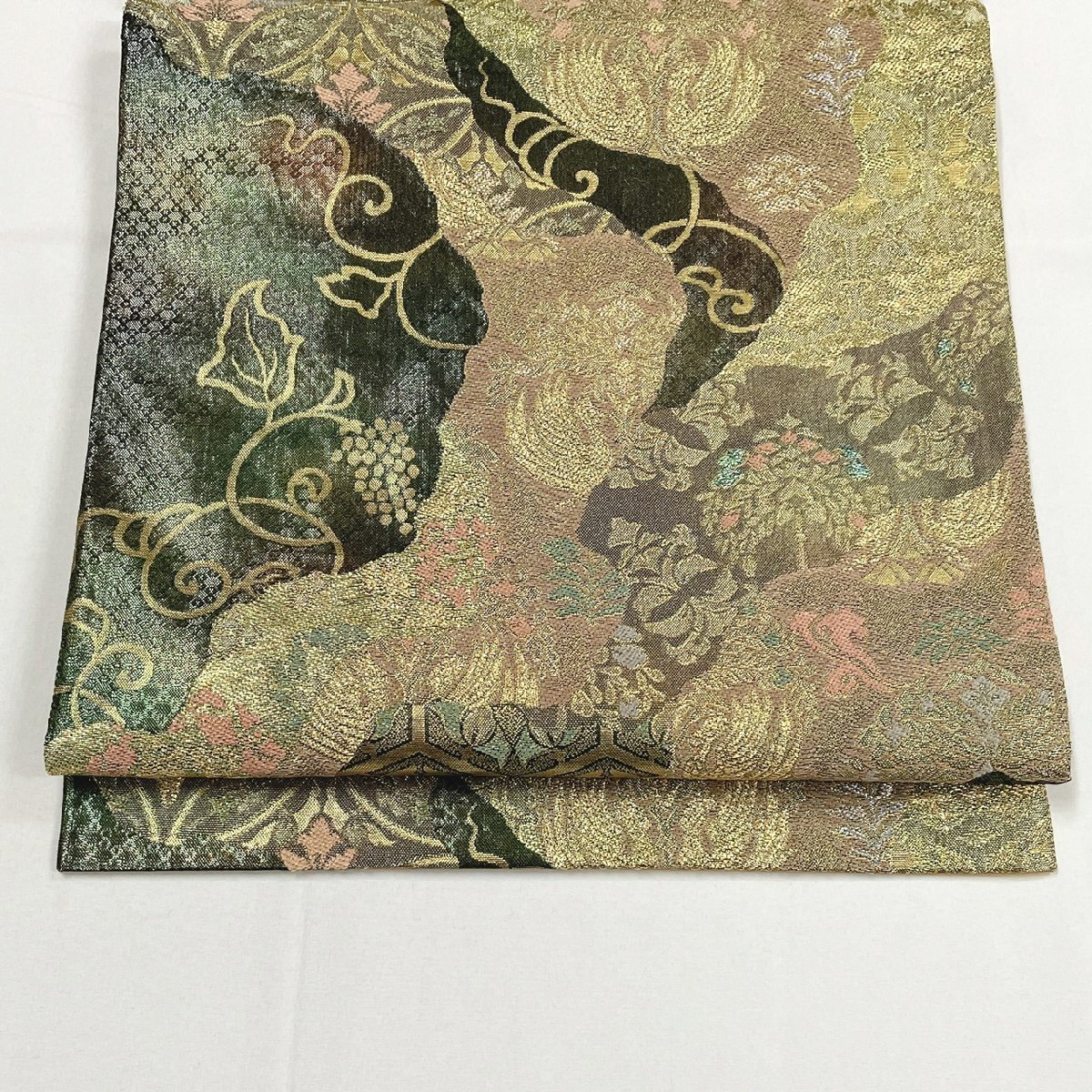 着物月花 引箔 艶やかな花 袋帯 六通柄 正絹 金銀糸 ob7397