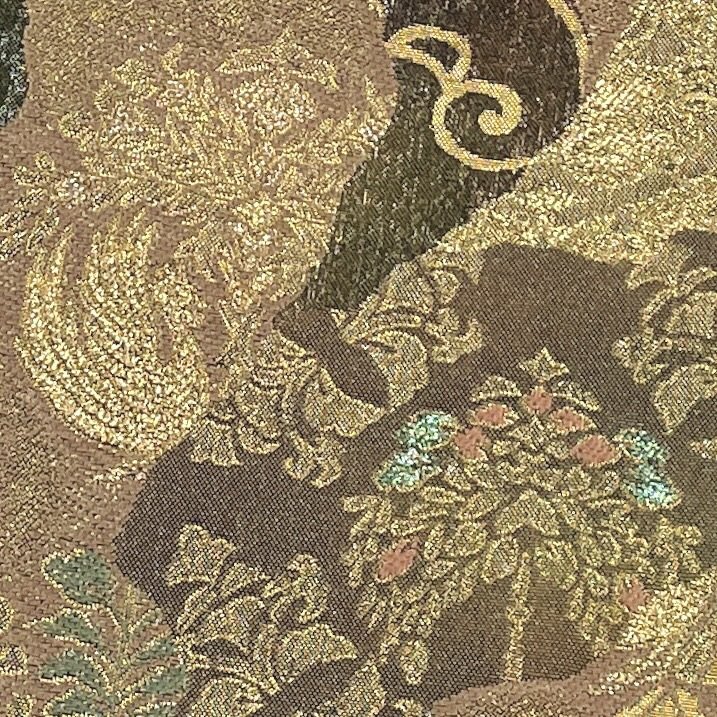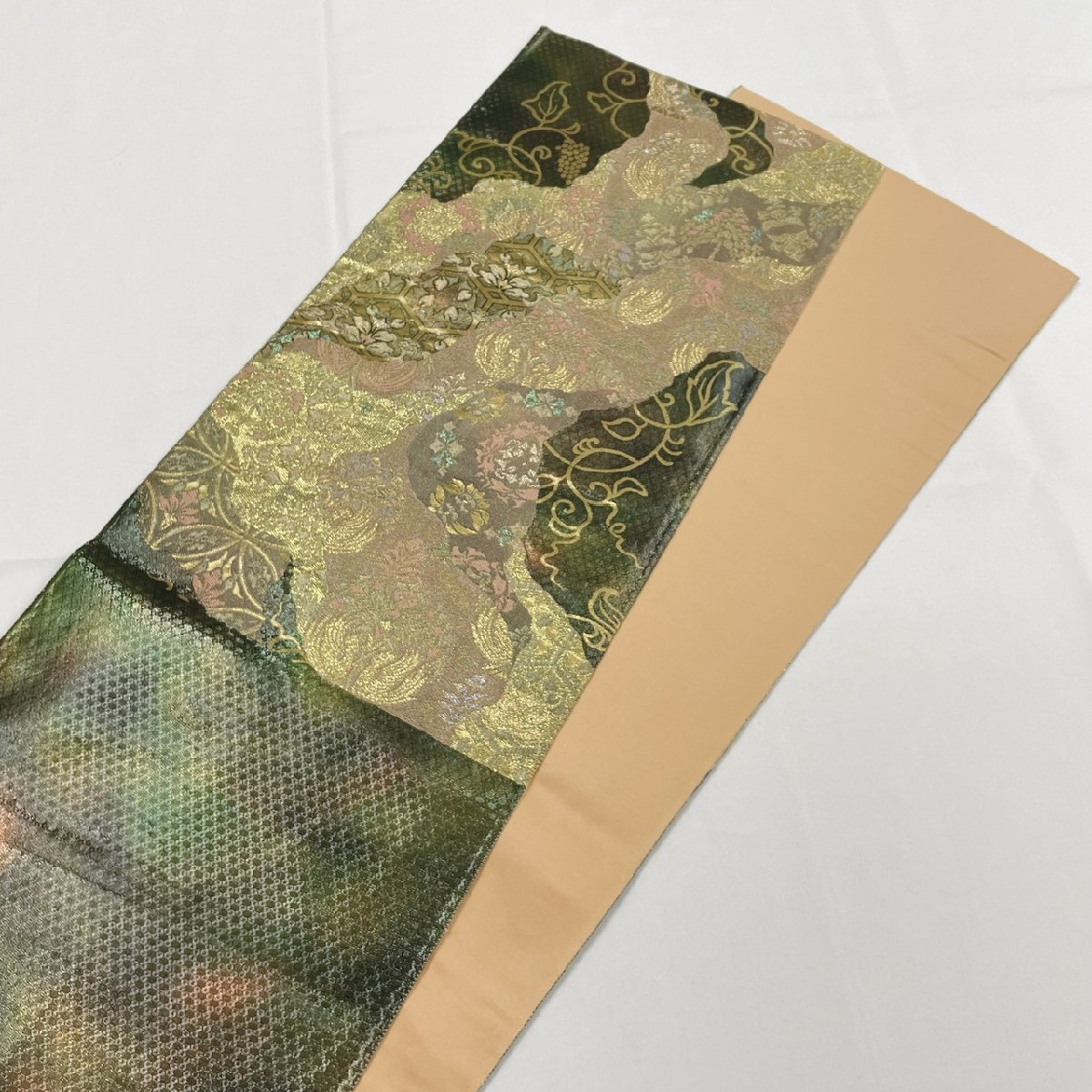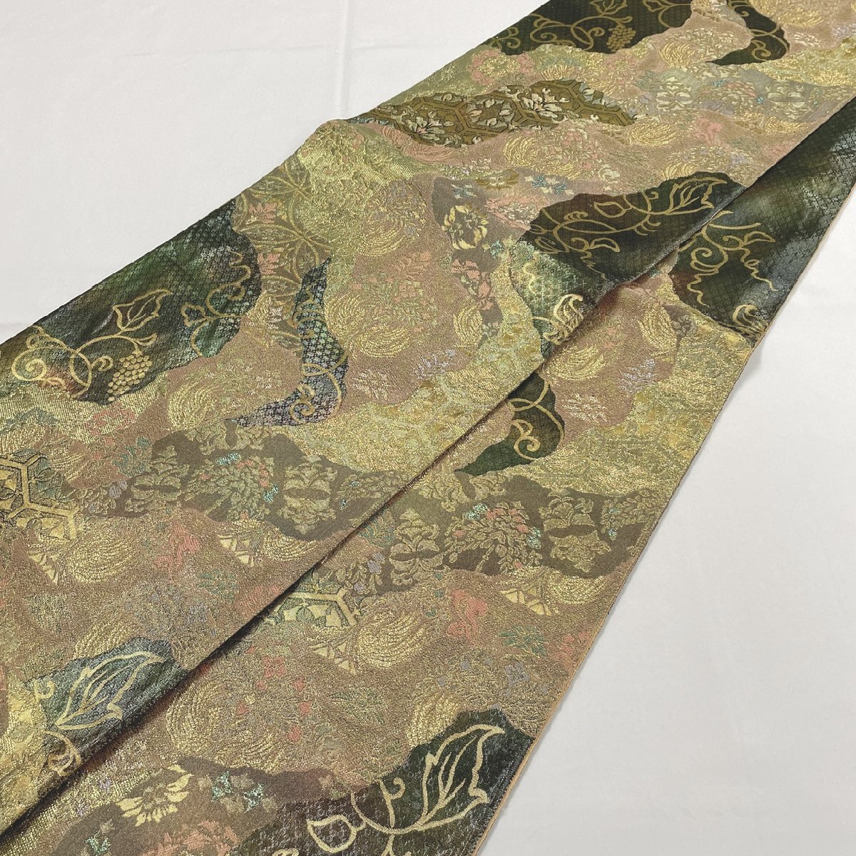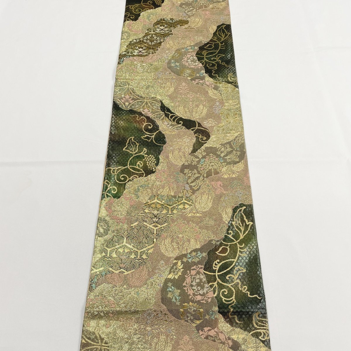着物月花 引箔 艶やかな花 袋帯 六通柄 正絹 金銀糸 ob7397