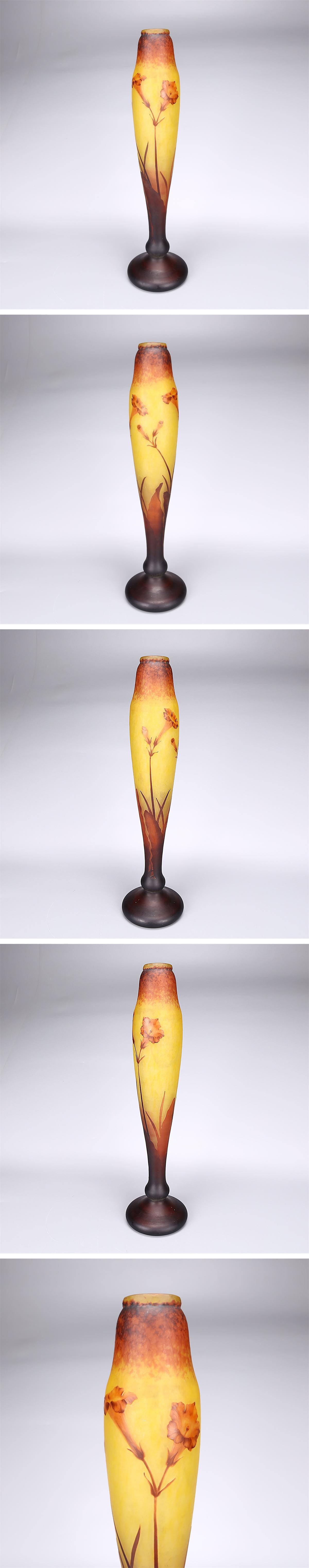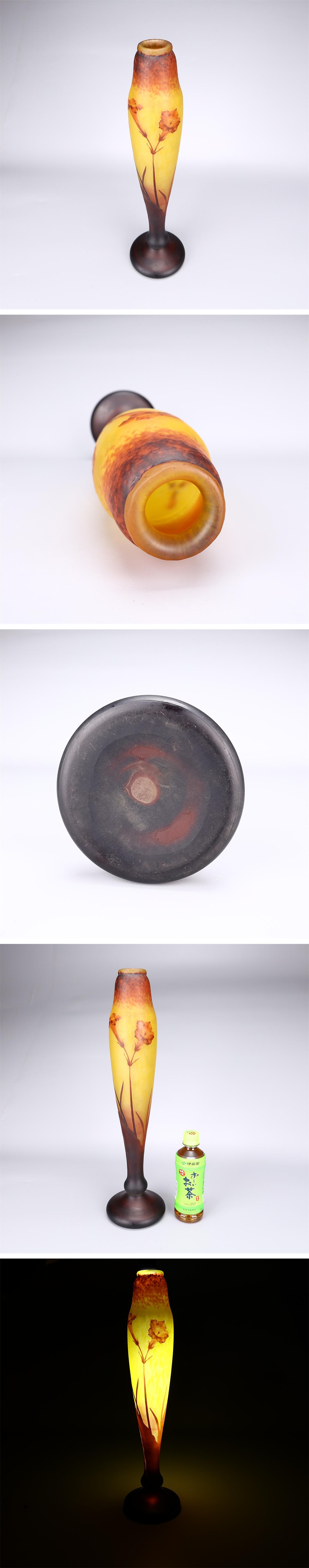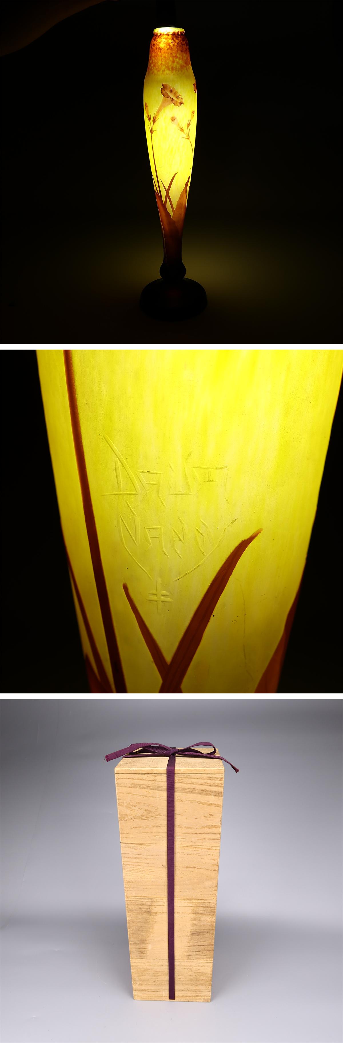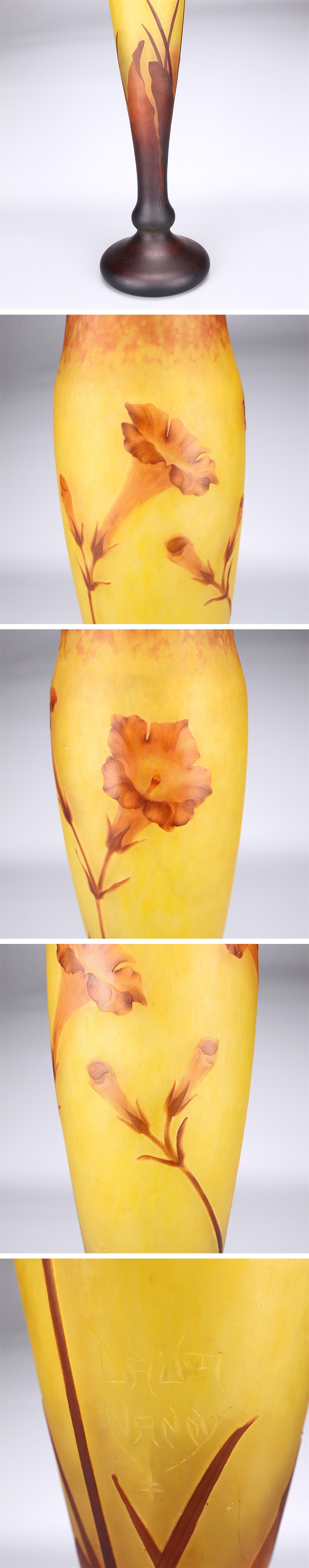 【吉】PC787 工芸ガラス Daum Nancy 【ドーム・ナンシー】 被せガラス花紋 大花瓶 高47.5㎝/本物保証 美品ZS!