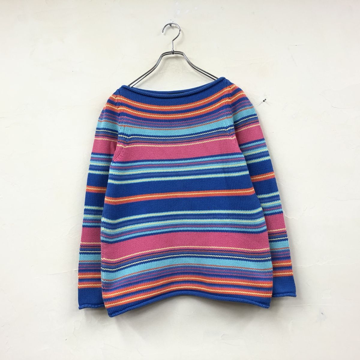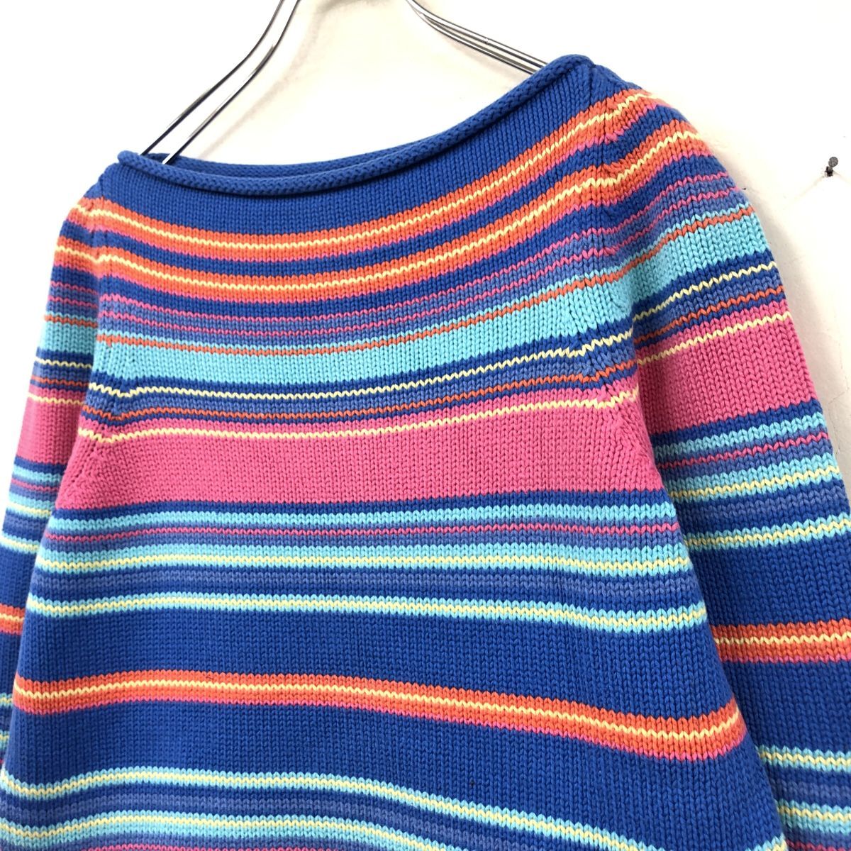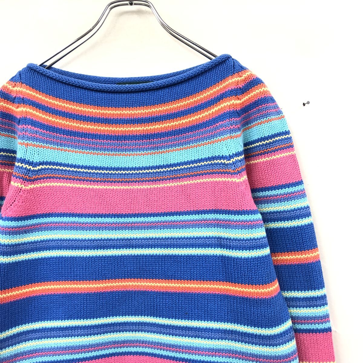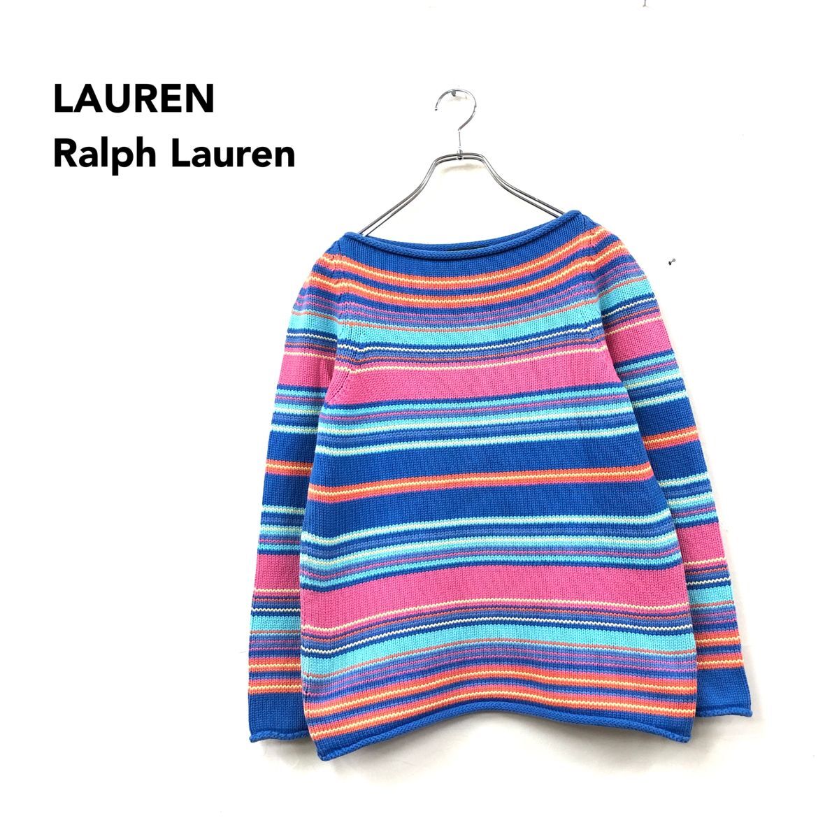 2N1210-N◆old◆ LAUREN Ralph Lauren ローレン ラルフローレン コットンニット セーター ゆったり ◆sizeS マルチ ボーダー 綿 古着