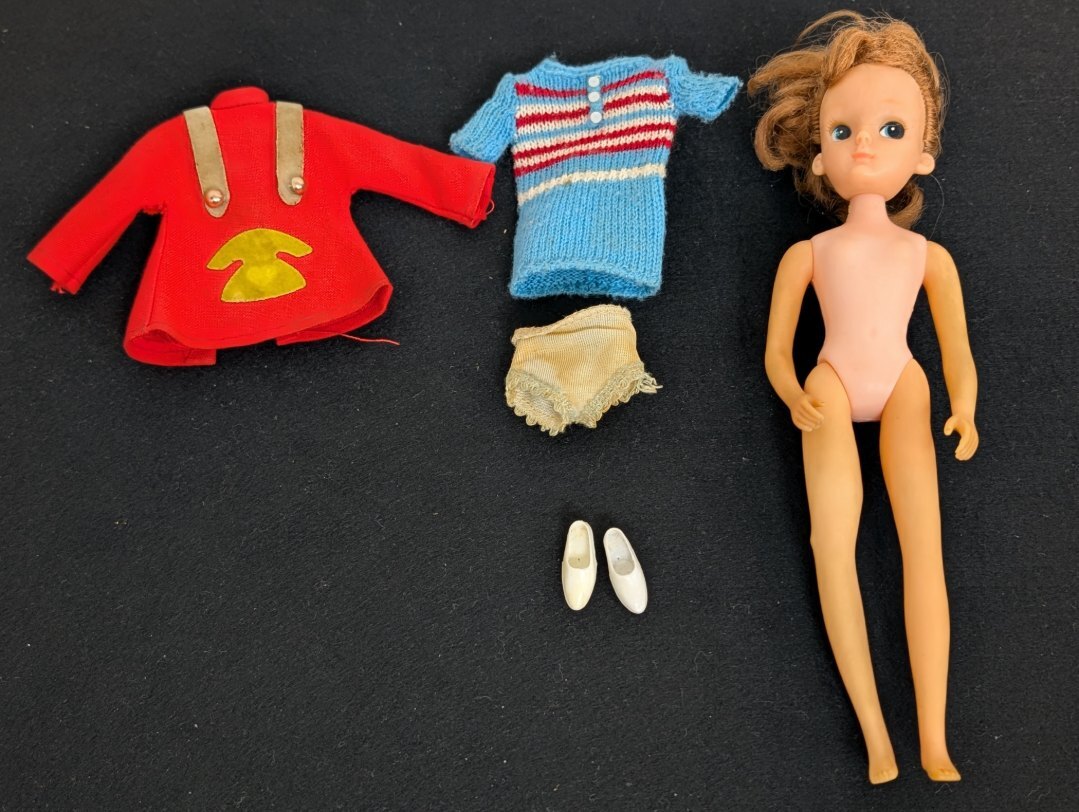 (30).希少!! タカラ(約21cm )初代リカちゃん へそドット有り 1着服オマケ