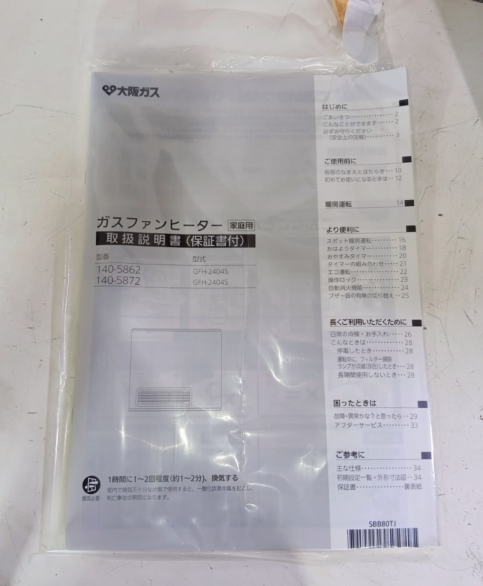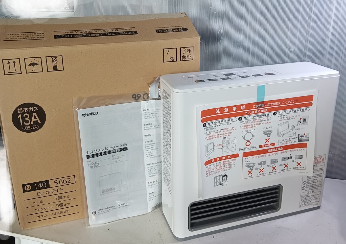 【未使用】 ガスファンヒーター 大阪ガス 暖房器具 ノーリツ ホワイト 都市ガス用 E1566