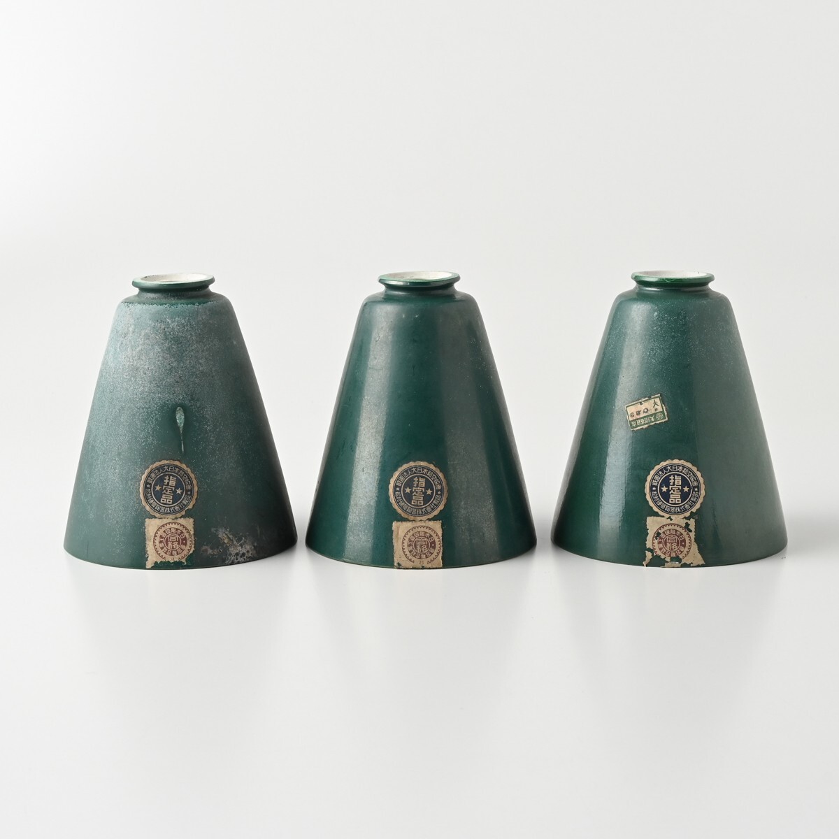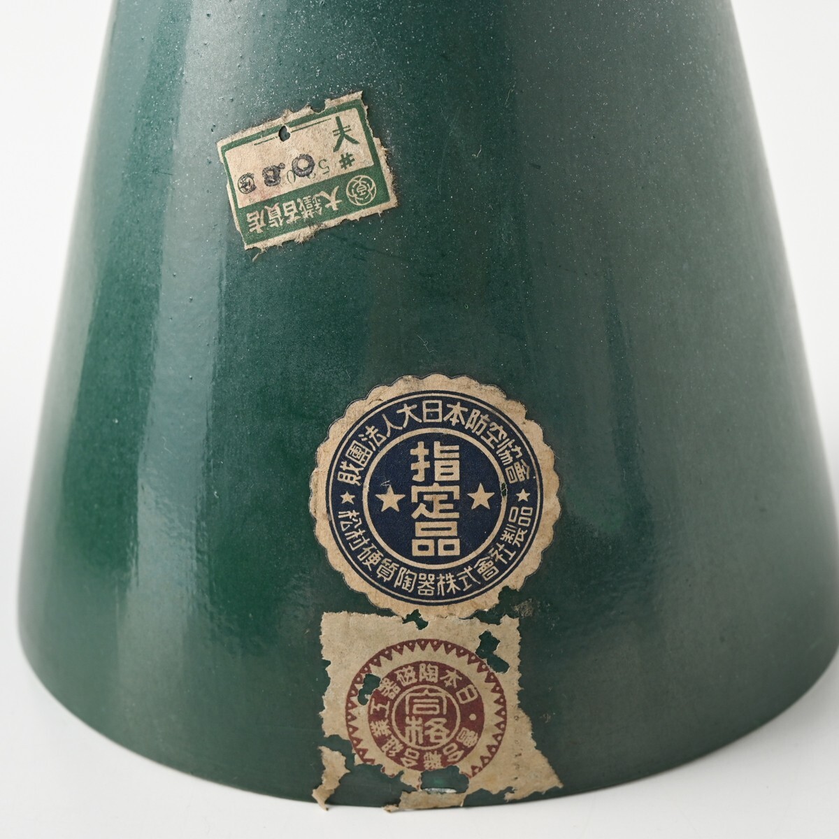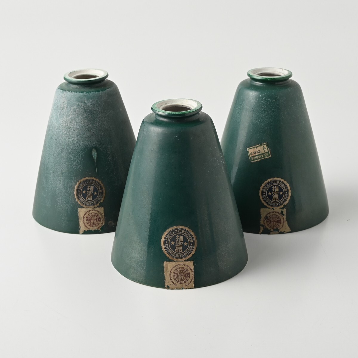 時代照明 電笠 松村硬質陶器株式会社 大日本防空協会 指定品 計3点 陶器製 緑色 グローブ/シェード 電傘 大正 昭和 戦前戦後 骨董 レトロ