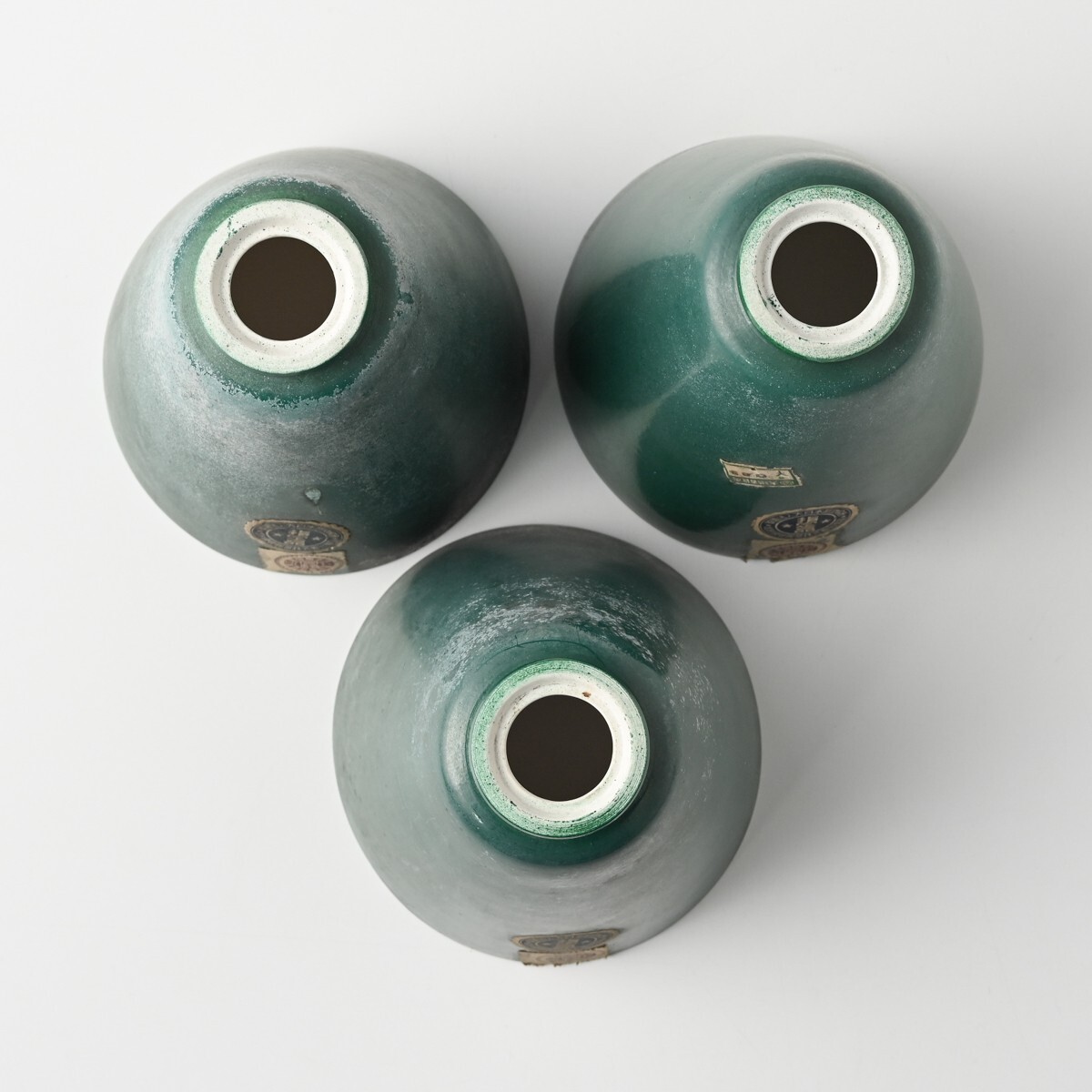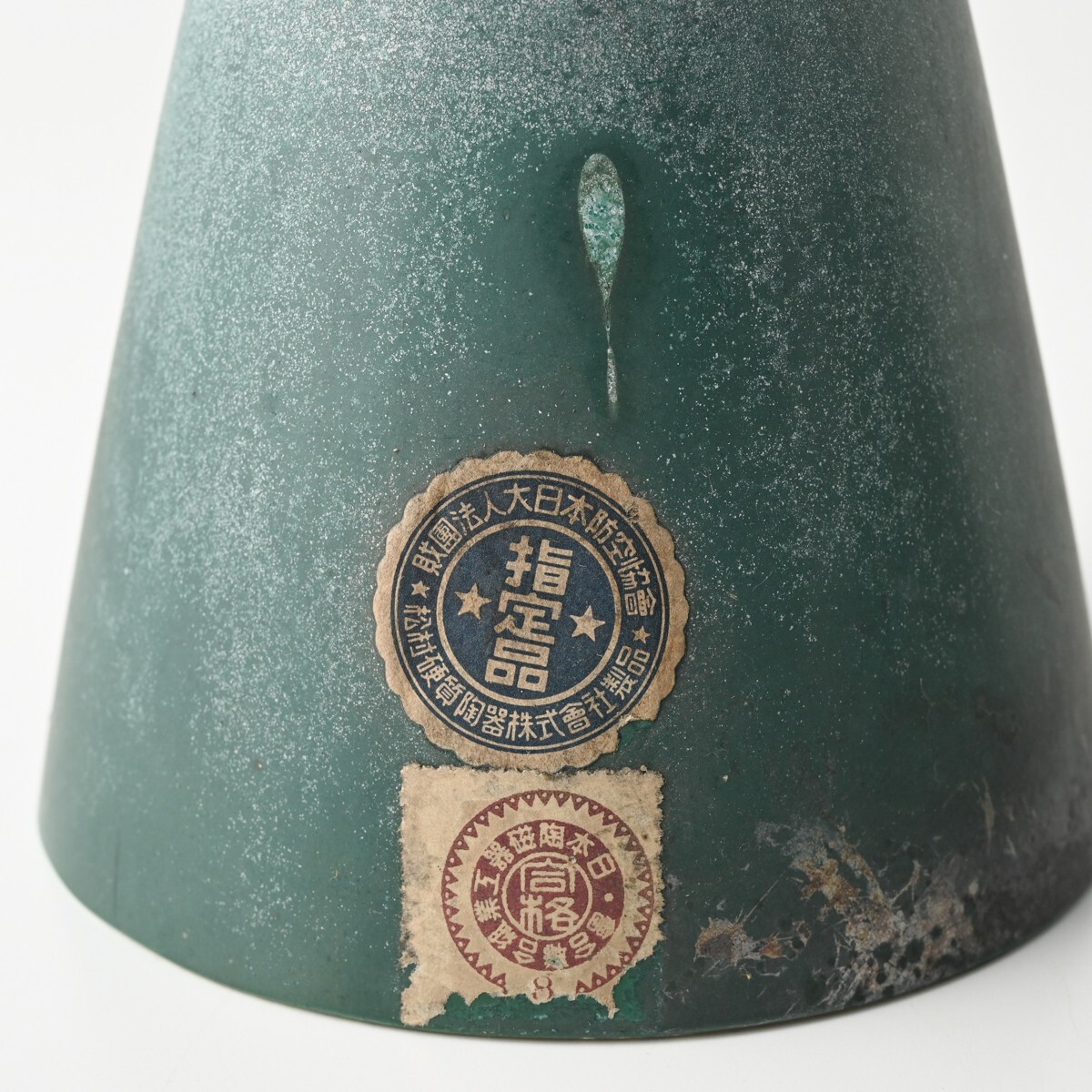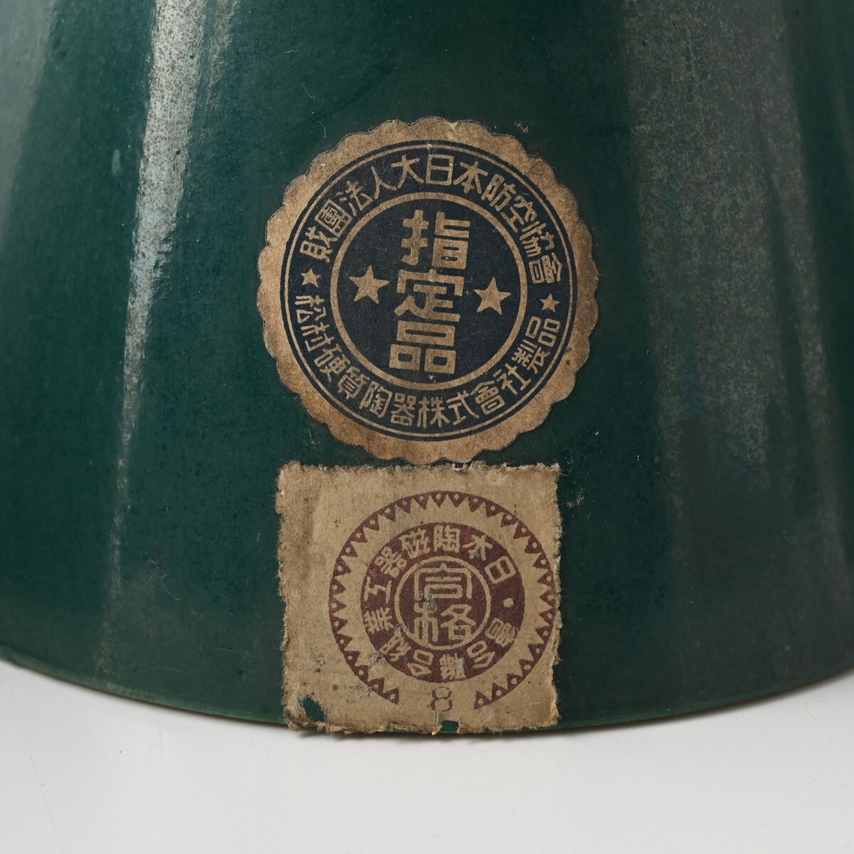 時代照明 電笠 松村硬質陶器株式会社 大日本防空協会 指定品 計3点 陶器製 緑色 グローブ/シェード 電傘 大正 昭和 戦前戦後 骨董 レトロ