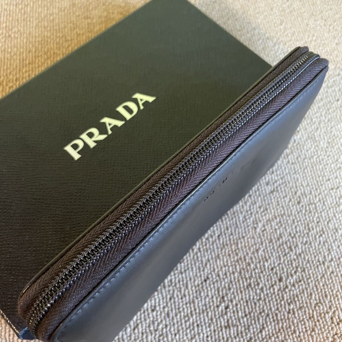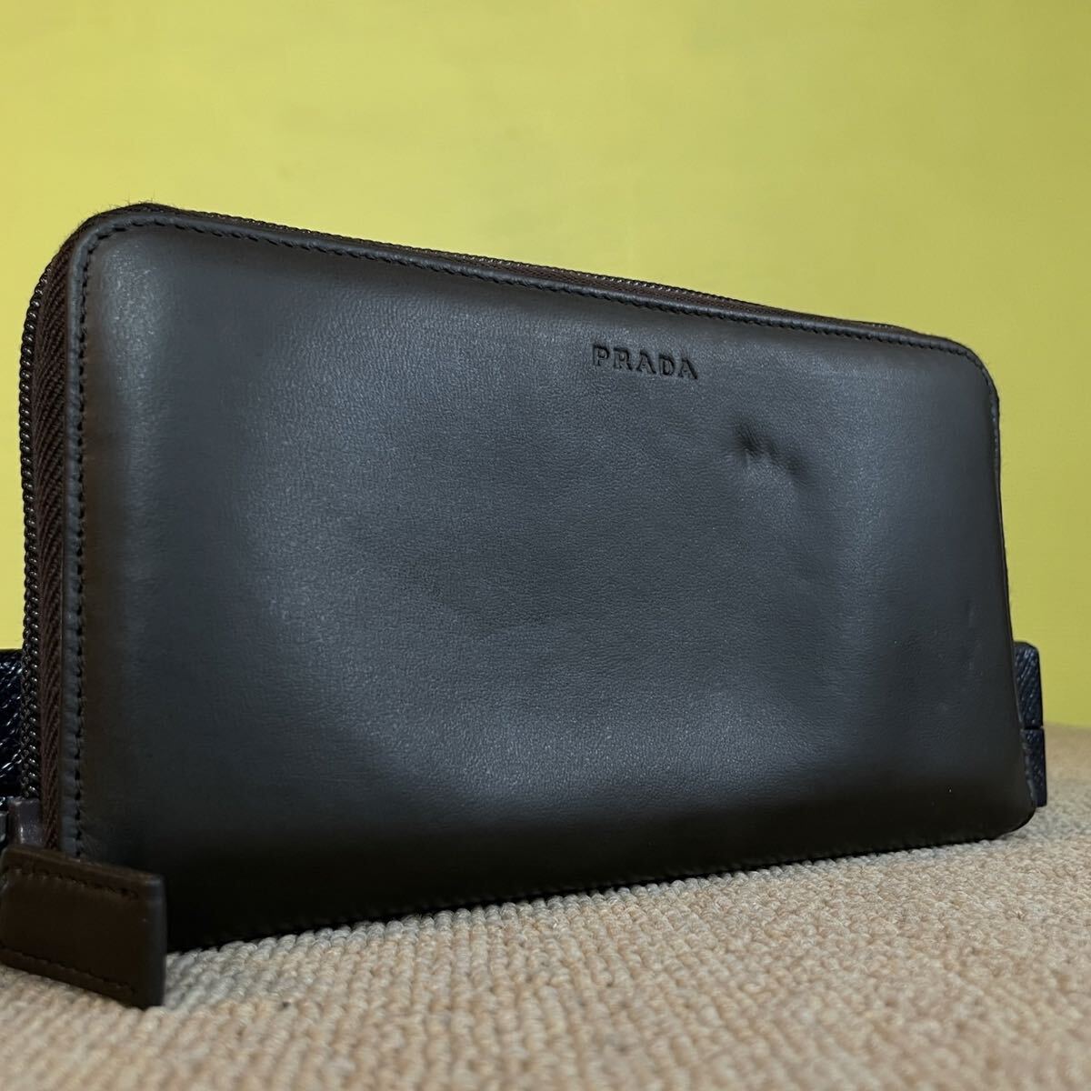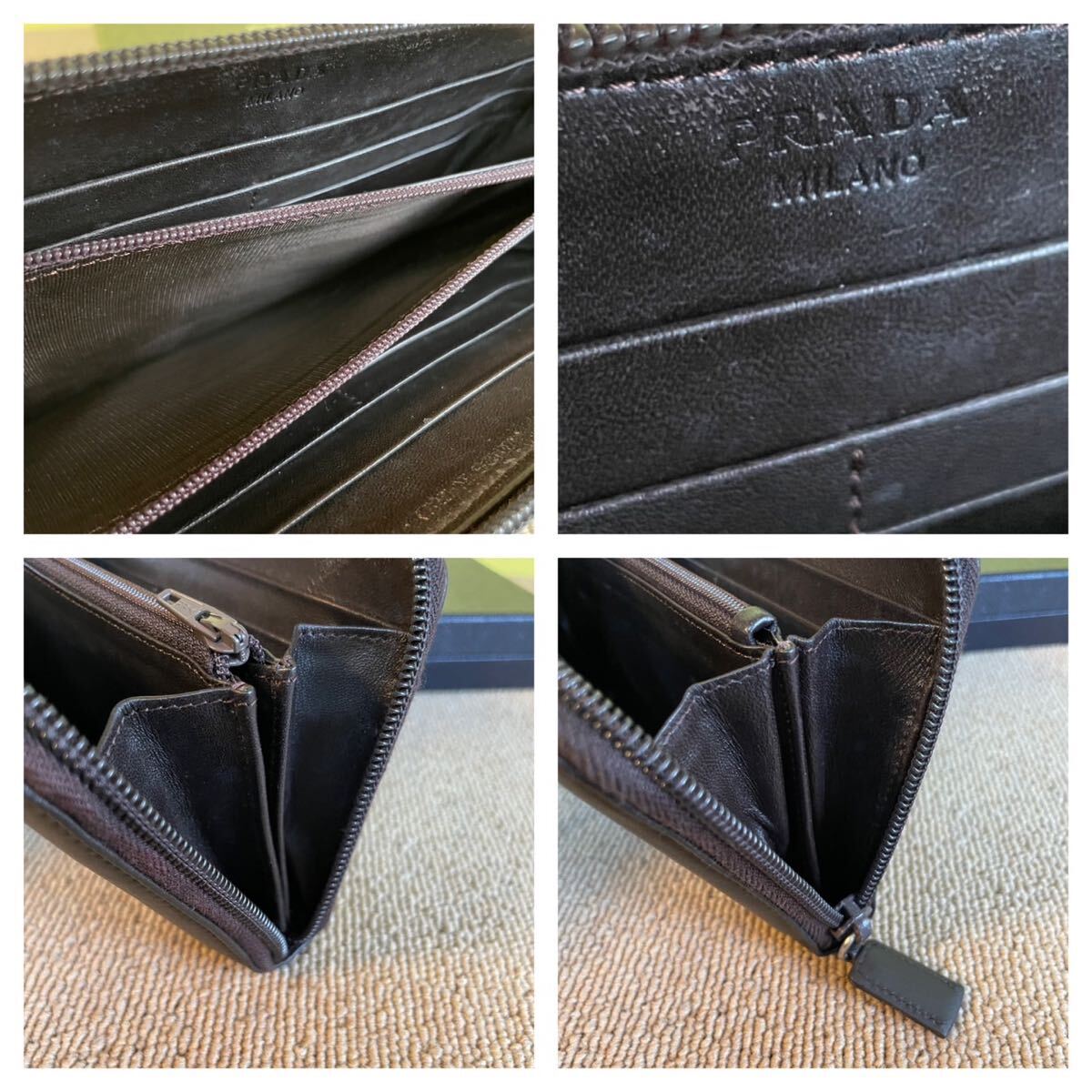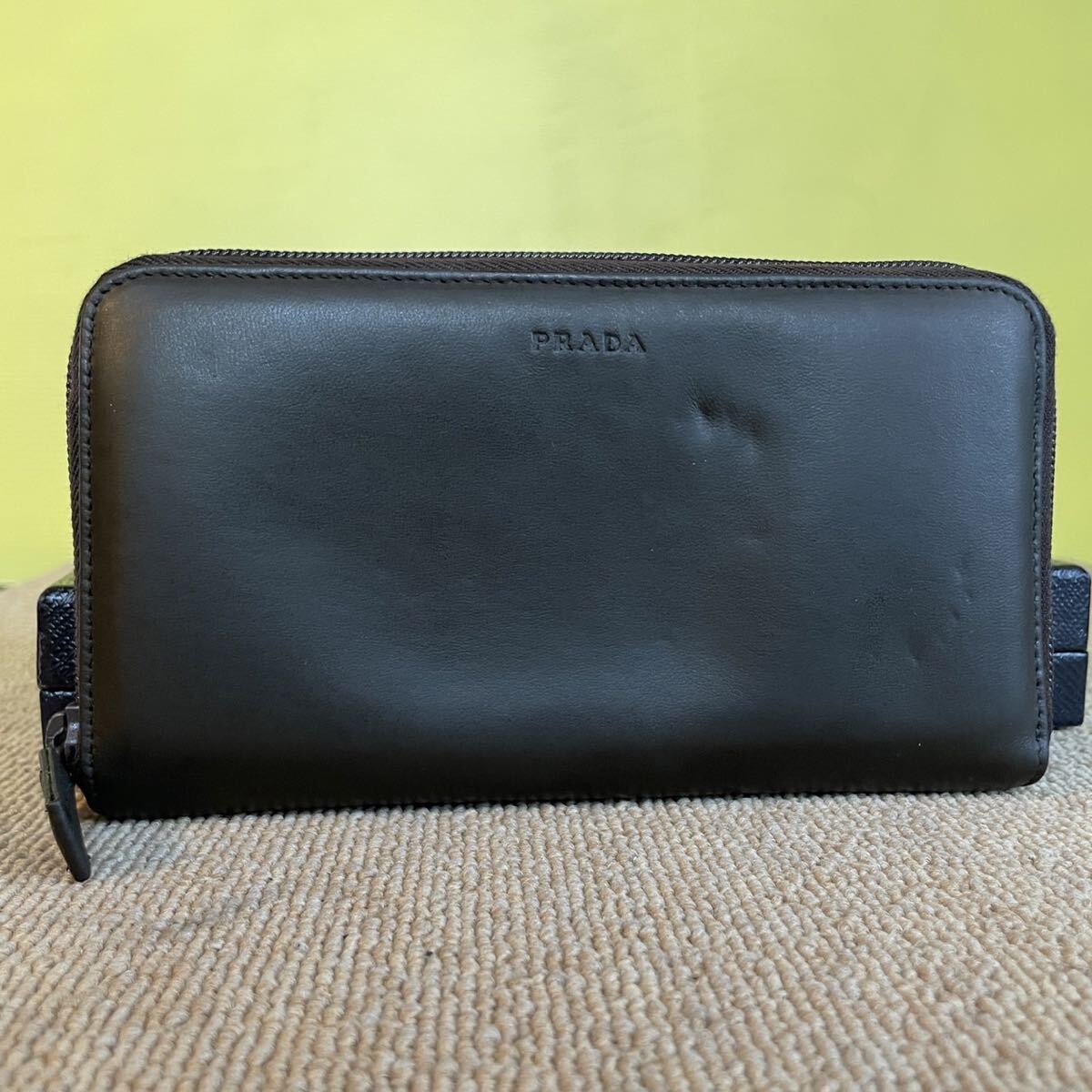 一円 美品 PRADA プラダ ラウンドファスナー サフィアーノレザー 長財布 ブラック 財布 ウォレット ロングウォレット ブラウン