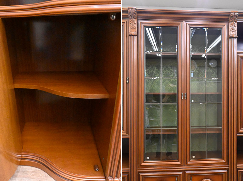D051M 購入300万円 イタリア製 最高級 クラシック 本象嵌 ステンドグラス 壁面飾り リビングボード 食器棚 分割可能 キュリオケース